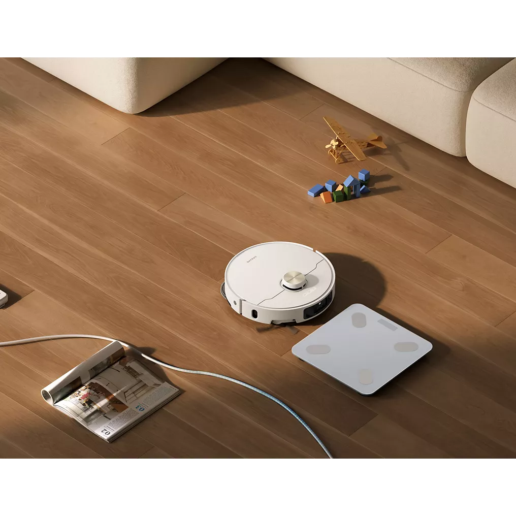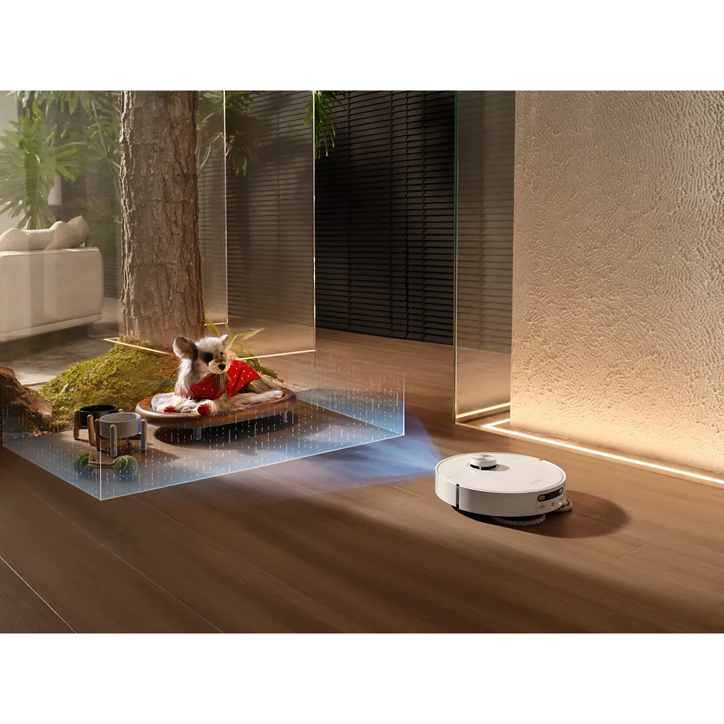 Le DREAME L40s Pro Ultra White se distingue par sa puissance d’aspiration impressionnante de 19 000 Pa, capable d’éliminer les salissures les plus tenaces, qu’elles soient humides ou sèches. Grâce à sa brosse duo démêlante HyperStream™, il assure un démêlage à 100 % des poils et cheveux, garantissant un nettoyage optimal sur tous types de surfaces. Avec sa technologie d’évitement des obstacles RVB IA et son éclairage structuré 3D à laser double, ce robot navigue avec précision dans votre maison, détectant et contournant les objets pour protéger vos animaux de compagnie et vos tapis.