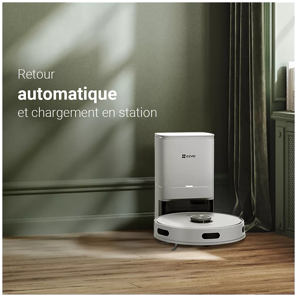 - Reprise automatique du nettoyage : Une fois rechargé, l’aspirateur reprend sa session de nettoyage là où il s’est arrêté