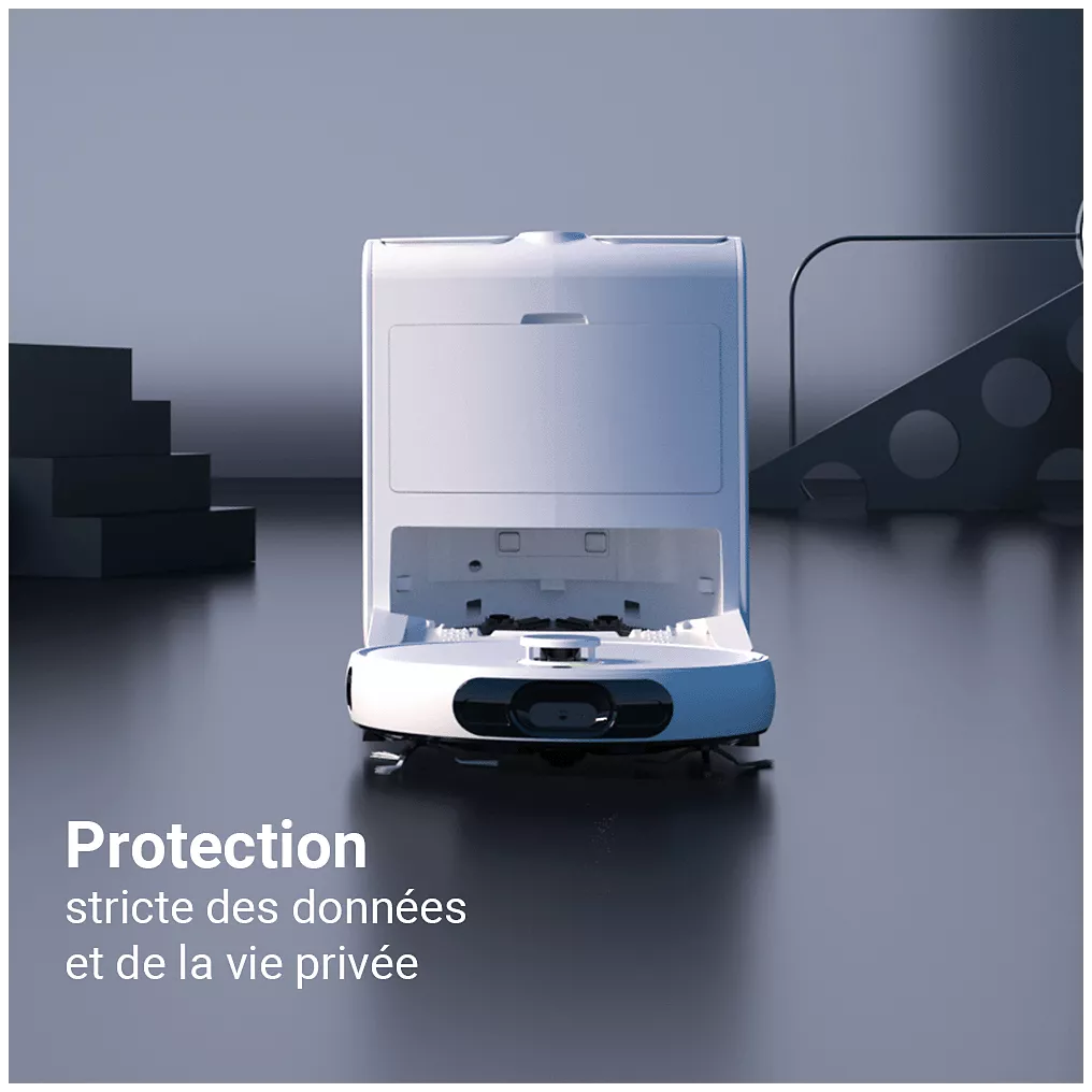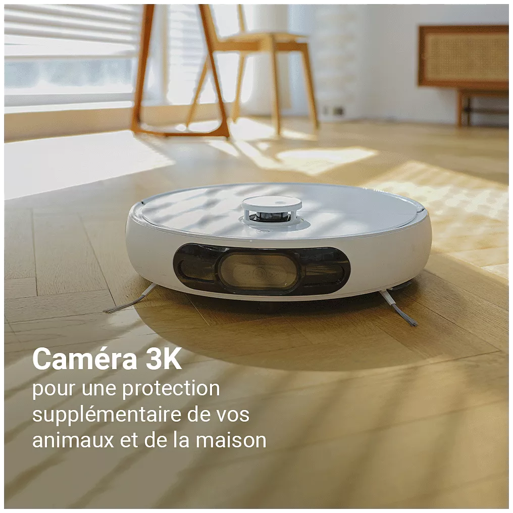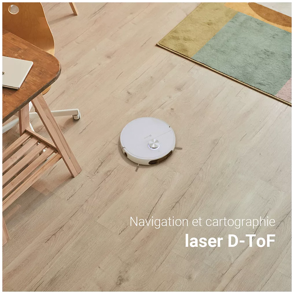 - Technologie caméra et laser : permet une cartographie complète et très précise des pièces. Grâce à ses caméras, ils analysent en temps réel ce qu’il a en face de lui pour améliorer ses prises de décisions et garantir son efficacité de nettoyage