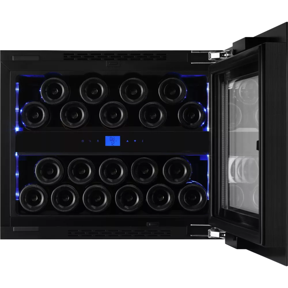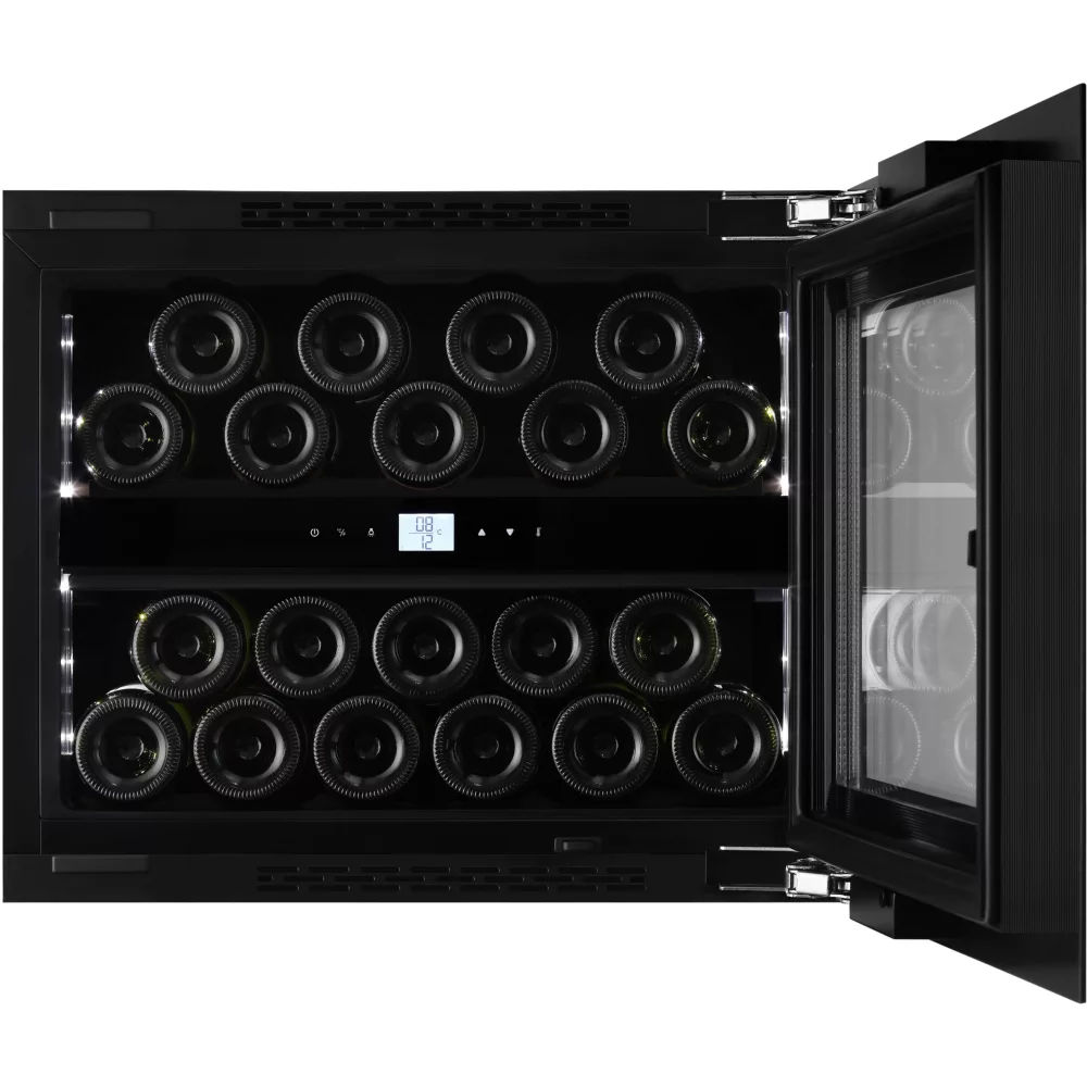 La cave à vin encastrable LE CHAI LBN200POV, conçue pour s’intégrer harmonieusement dans votre cuisine, offre une capacité de 20 bouteilles réparties dans 2 zones distinctes. Adaptée pour une niche de 45 cm, cette cave auto-ventilée se dote d’un cadre de porte vitrée noire élégant, renforcée par un triple vitrage traité anti-UV pour une protection optimale de vos vins. La porte réversible avec ouverture droite et le système push-open sans poignée confèrent un aspect épuré et moderne, tandis que la charnière type pantographe assure une ouverture fluide et adaptée à l’encastrement.