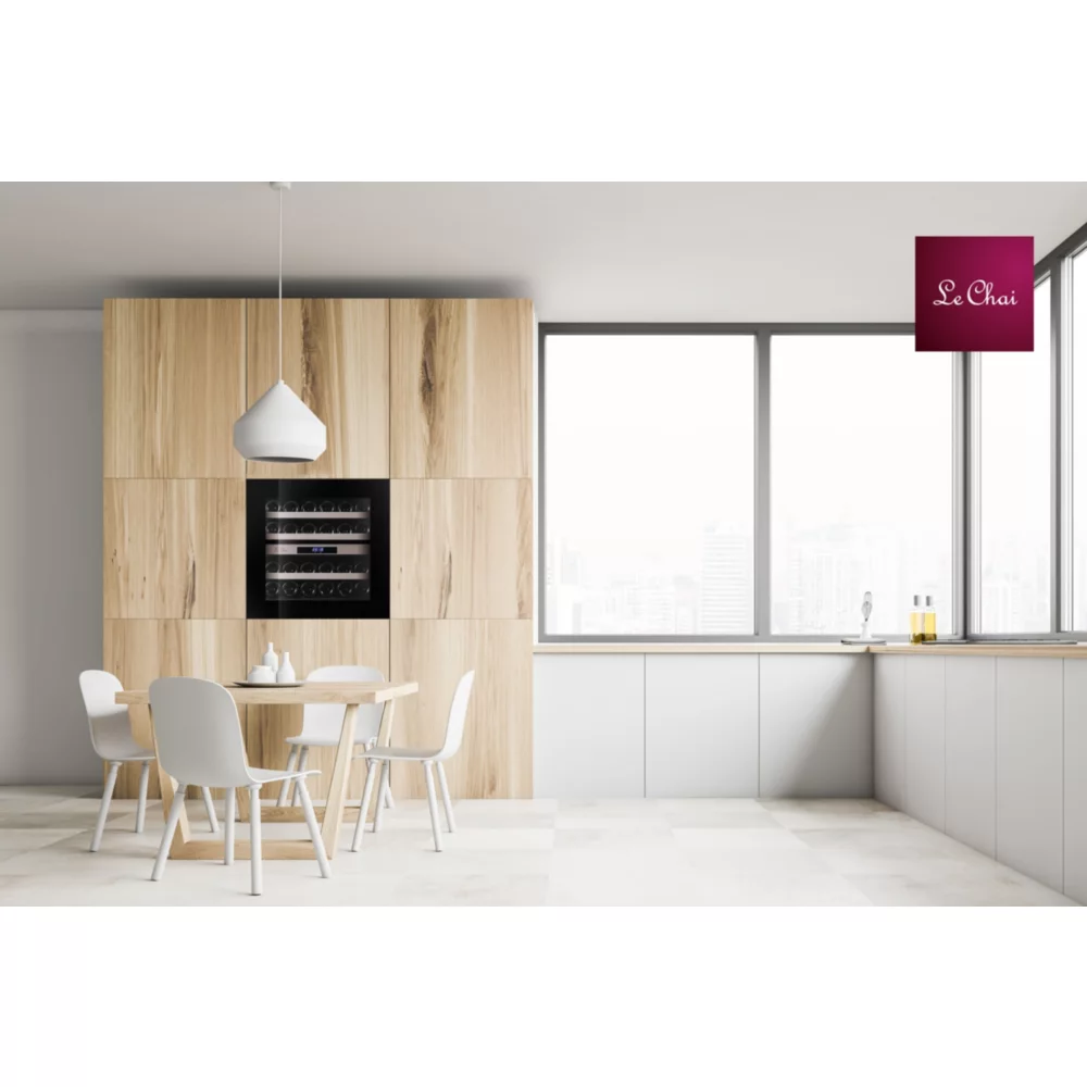La cave à vin encastrable LE CHAI LBN240POV s’intègre harmonieusement sous plan ou dans une colonne de cuisine. Sa finition moderne avec porte vitrée anti‑UV protège les bouteilles contre la lumière tout en mettant en valeur votre collection.