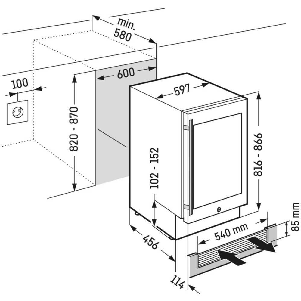 - Type d’installation : encastrable, installez votre cave sous un plan de travail ou encastrez la dans une niche.