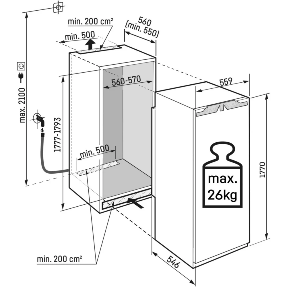 • Dimensions d’encastrement LxHxP : 56 x 178 x 55 cm