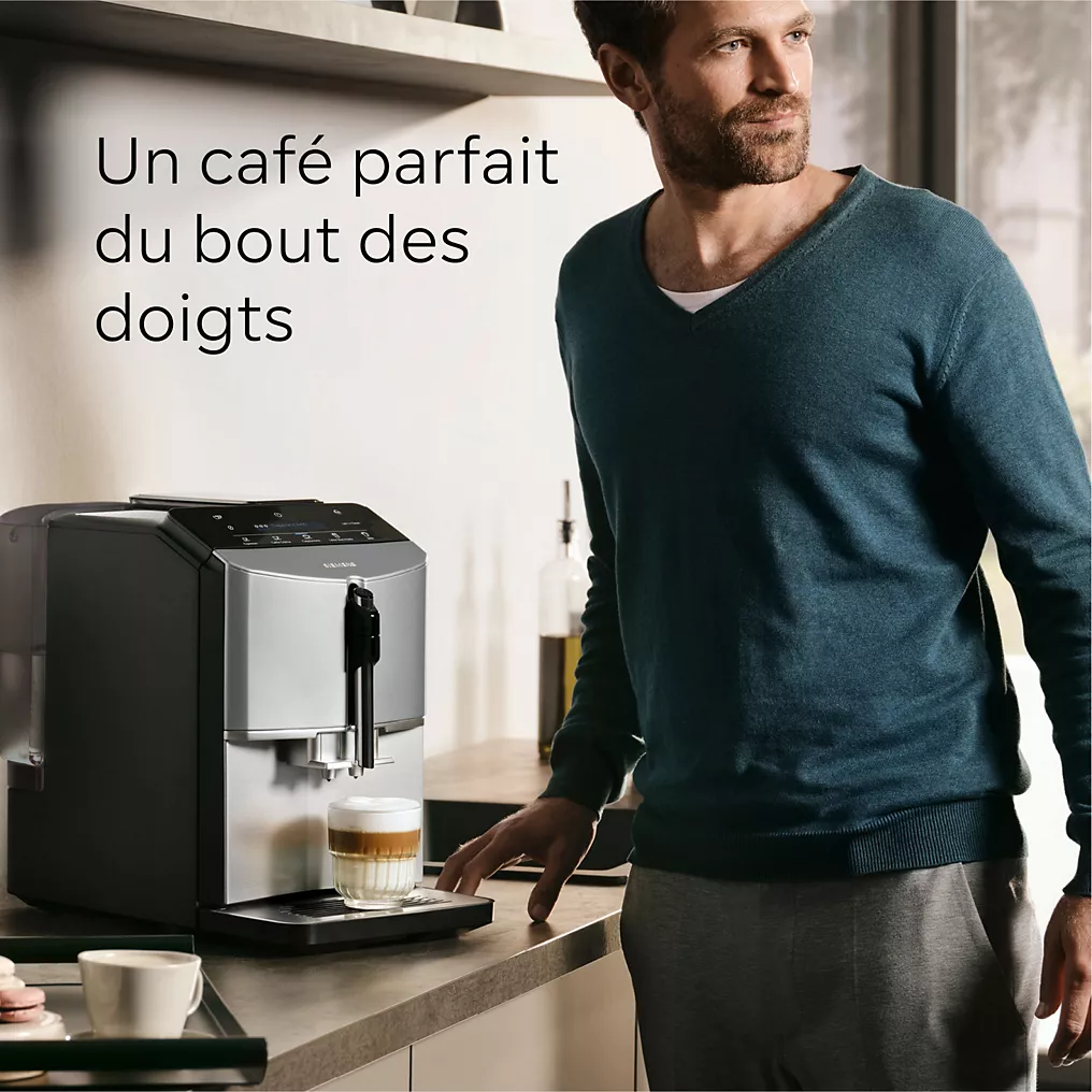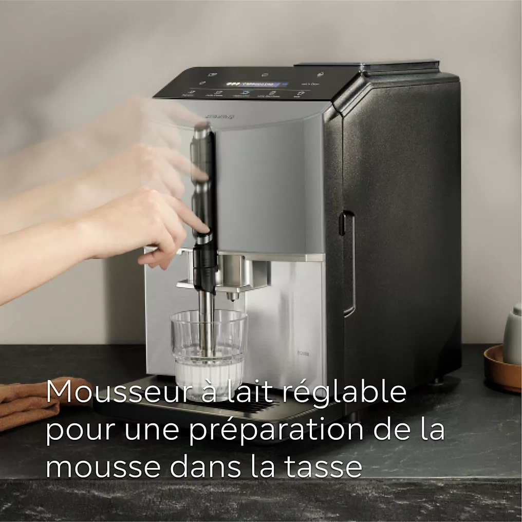 Les points clés Système de boissons lactées : buse vapeur intégrée Capacité du bac à grains : 250 g Capacité du réservoir d’eau : 1,4 L Le + : MilkPerfect : plongez simplement la buse à lait dans la tasse et obtenez une mousse onctueuse