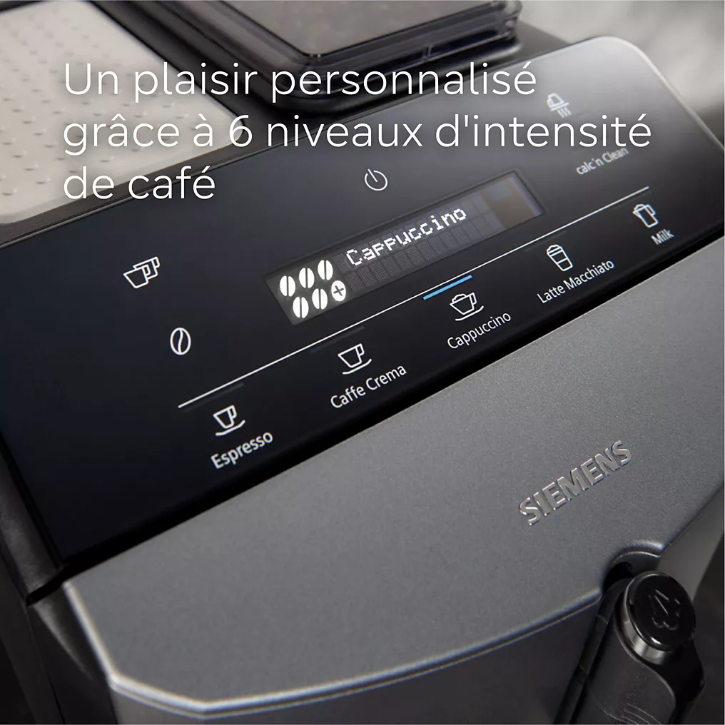 Savourez un café digne d’un barista chez vous avec le SIEMENS TF305E04, expresso broyeur automatique alliant simplicité, performance et arômes riches.