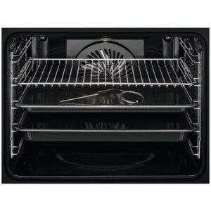 Le four encastrable AEG BSE77228BM SteamCrisp combine vapeur et chaleur tournante pour des plats croustillants à l’extérieur et moelleux à l’intérieur.