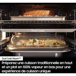 Le four pyrolyse SAMSUNG NV7B6795JAK Bespoke sera votre nouvel équipement pour ne rater aucune de vos cuissons. Il est équipé de 2 cavités et propose 10 modes de cuisson, dont la chaleur tournante, pour plus de puissance, et la cuisson 100 % vapeur. Votre four vous sera livré avec un plat 2-en-1 à vapeur. Grâce à la fonction vapeur assistée (injection de vapeur), vous pourrez faire cuire des volailles ou autres viandes à la perfection !