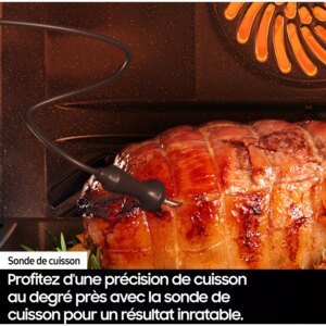 • Sonde de cuisson : la sonde de cuisson permet de surveiller la température à coeur de votre plat. Elle met fin au programme une fois la température atteinte. Vous avez la certitude de réussir vos cuissons même délicates