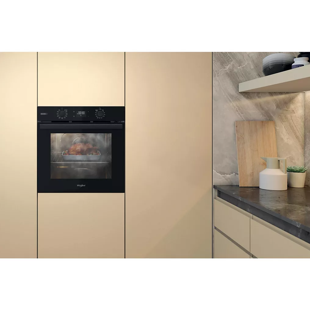 Le four encastrable vapeur Whirlpool OMSR58RU0B associe technologie moderne et cuisson vapeur pour des plats savoureux, moelleux et parfaitement maîtrisés.