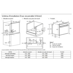 - Type d’encastrement : Four standard (60 x 60 cm)