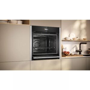 Le four encastrable NEFF B54CR71N3 N70 Airfry combine chaleur tournante performante et fonction AirFry pour des cuissons croustillantes et maîtrisées.