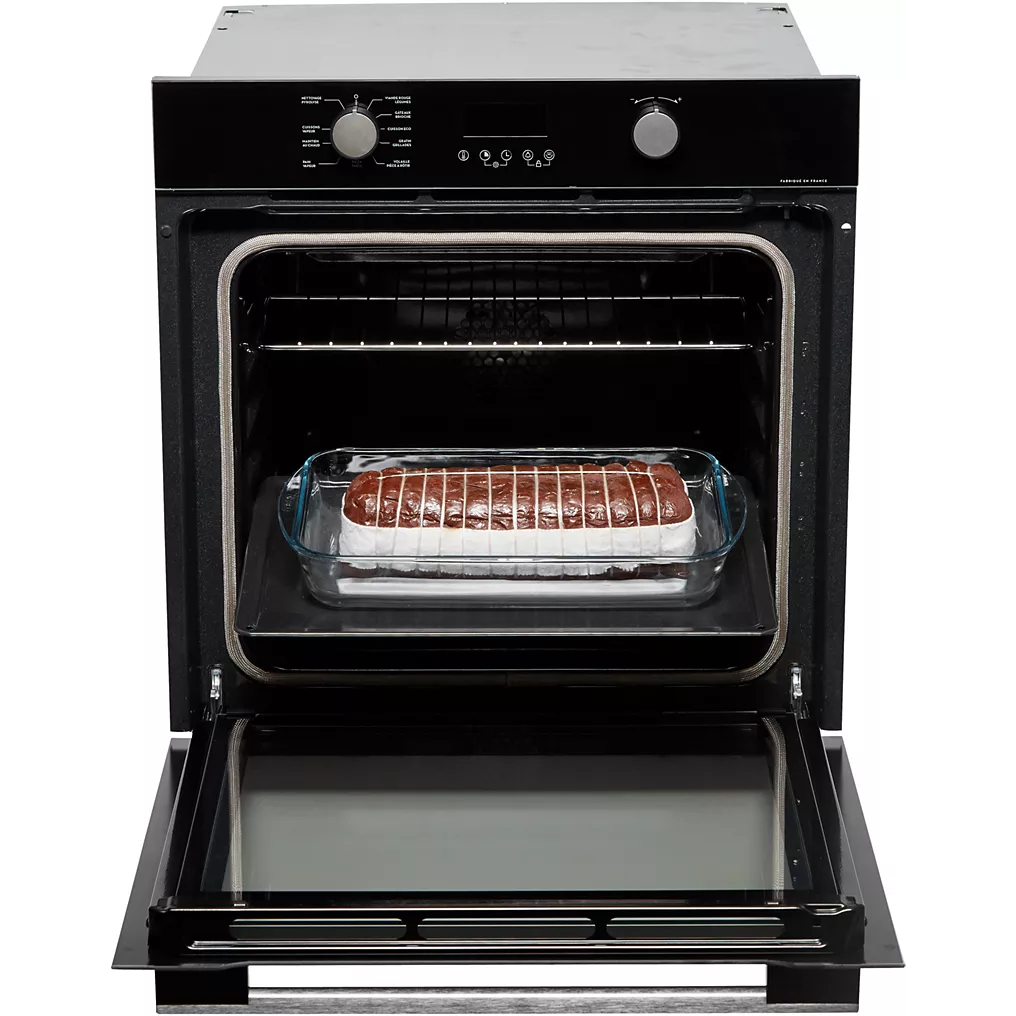 Les points clés Chaleur tournante brassée – Nettoyage pyrolyse Porte froide – Ouverture standard Encastrement standard (60cm) Le + : guide culinaire avec une sélection de 12 plats en cuisson automatique. Cuisson avec ajout vapeur.