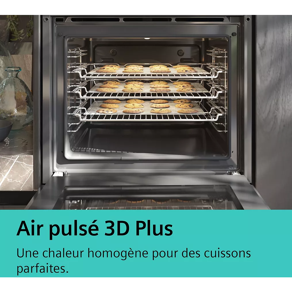 Le four encastrable Siemens HB578GES3F ActiveClean combine cuisson homogène et nettoyage automatique par pyrolyse pour un confort d’utilisation optimal.