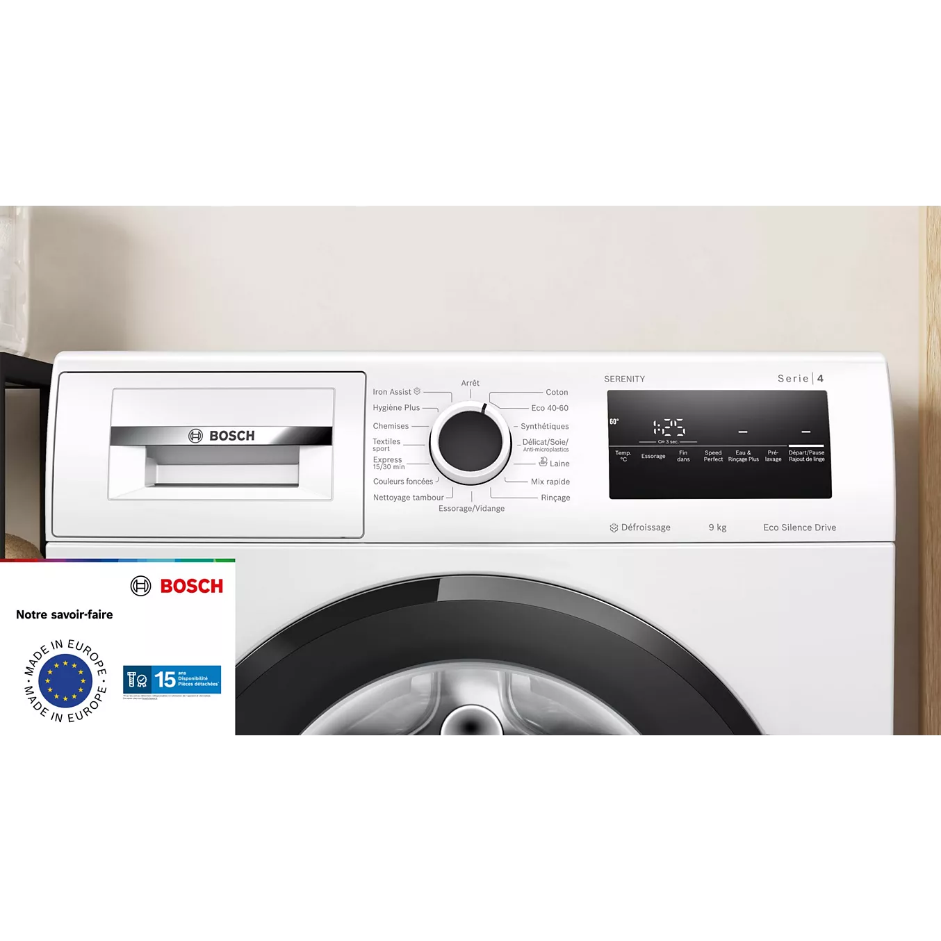 Le BOSCH WAN2823QFR propose une interface claire et intuitive. Les commandes sont faciles à comprendre. De plus, la sélection des options se fait rapidement. Ainsi, l’appareil s’intègre naturellement dans l’organisation du foyer.