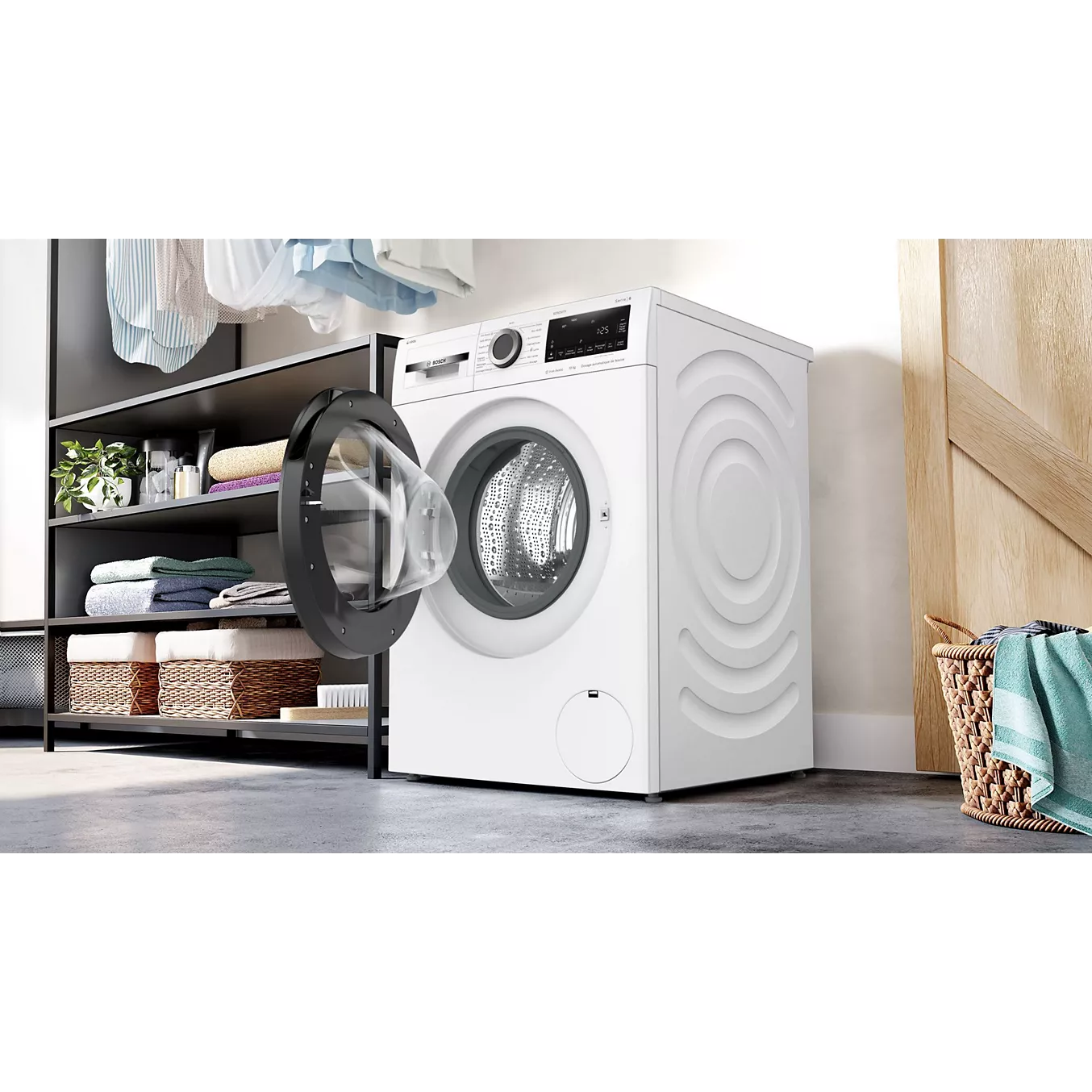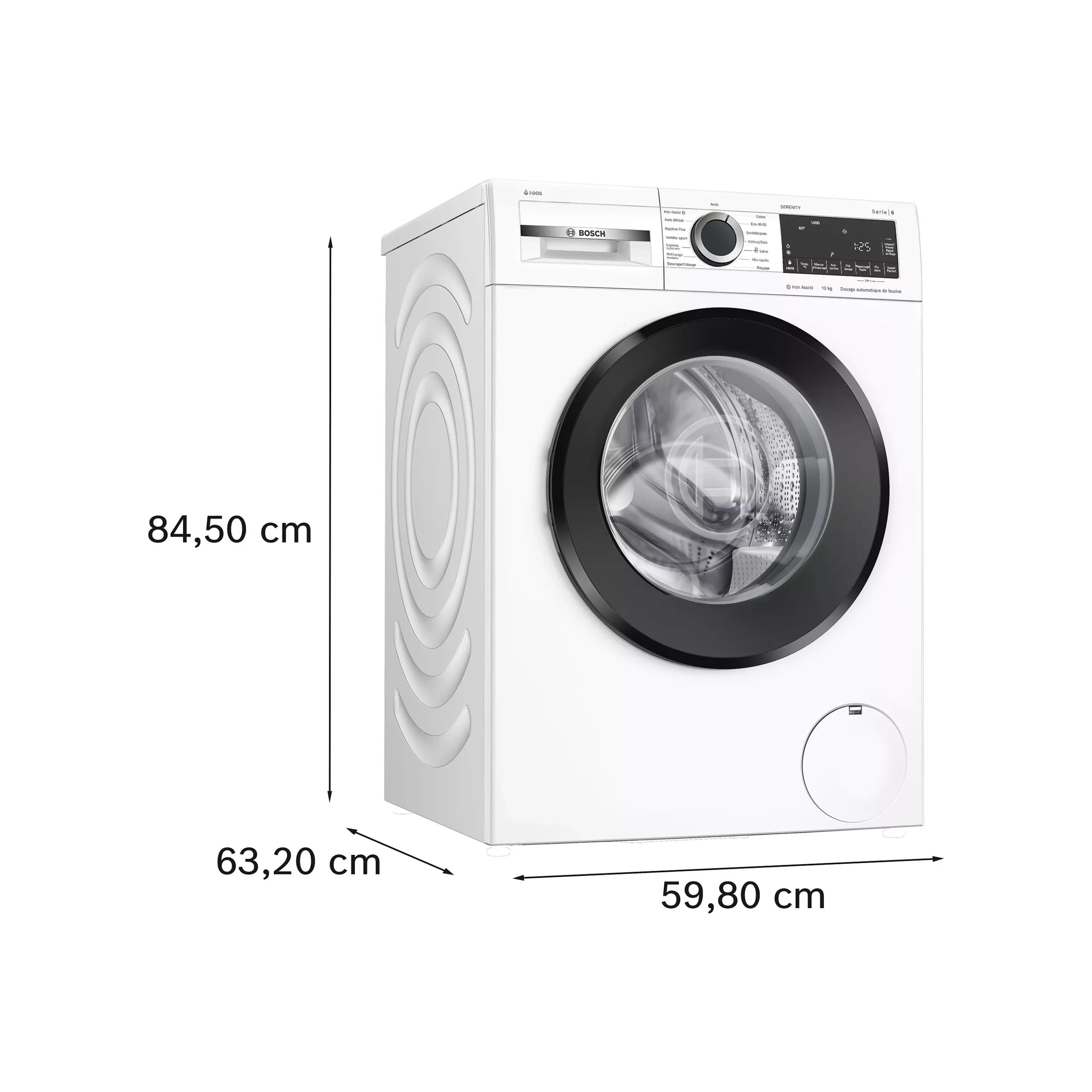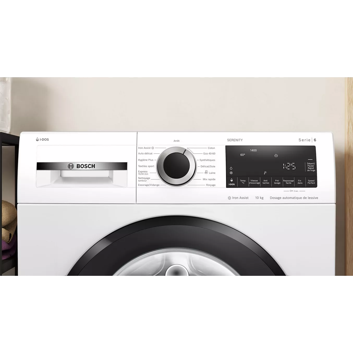Lave-linge Bosch 10 kg avec dosage automatique i-DOS, vapeur et classe A, idéal pour un lavage précis, silencieux et économique.
