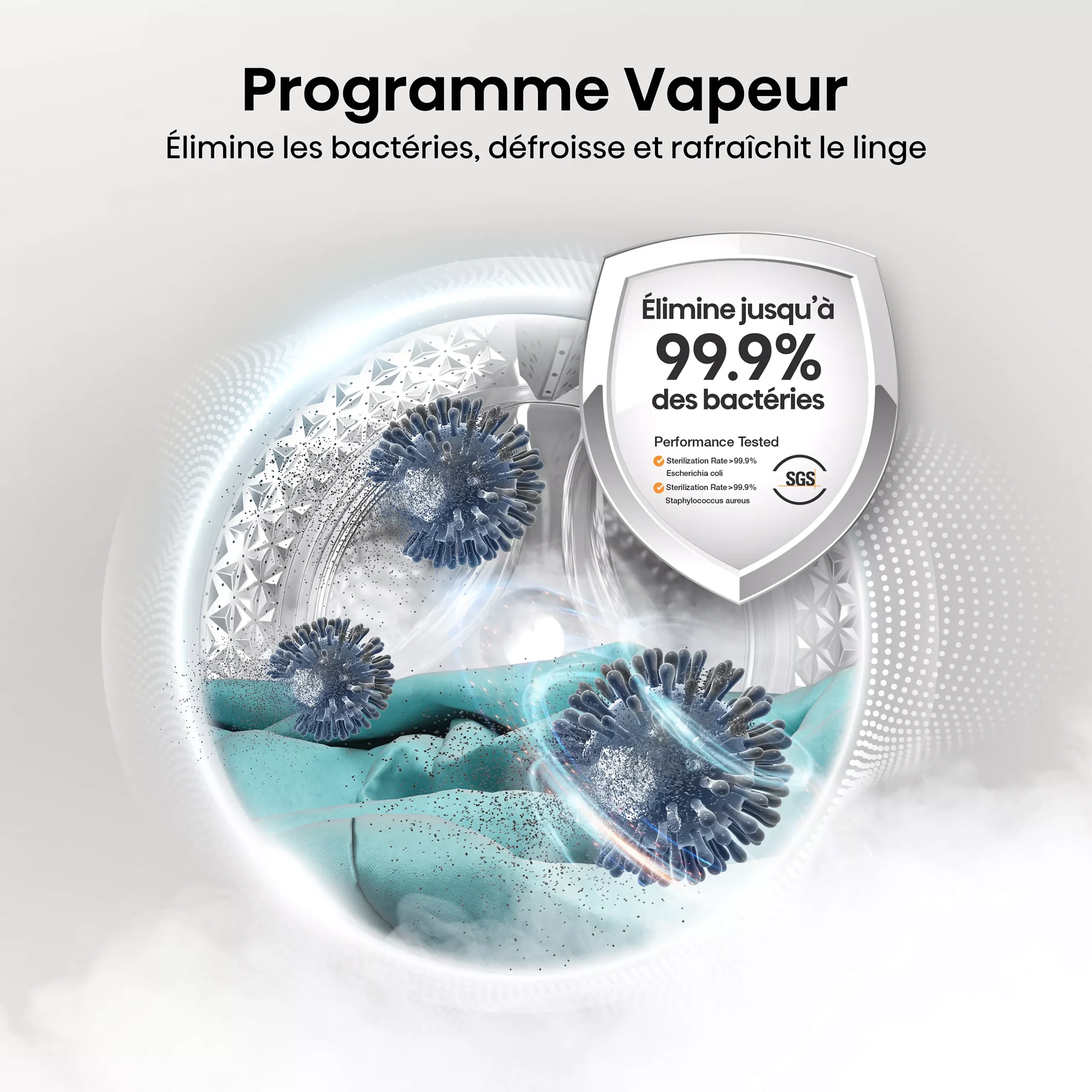 Par ailleurs, ce lave-linge Hisense propose plusieurs programmes utiles. Ils incluent les cycles éco, rapide, anti-allergies, bébé et vapeur.