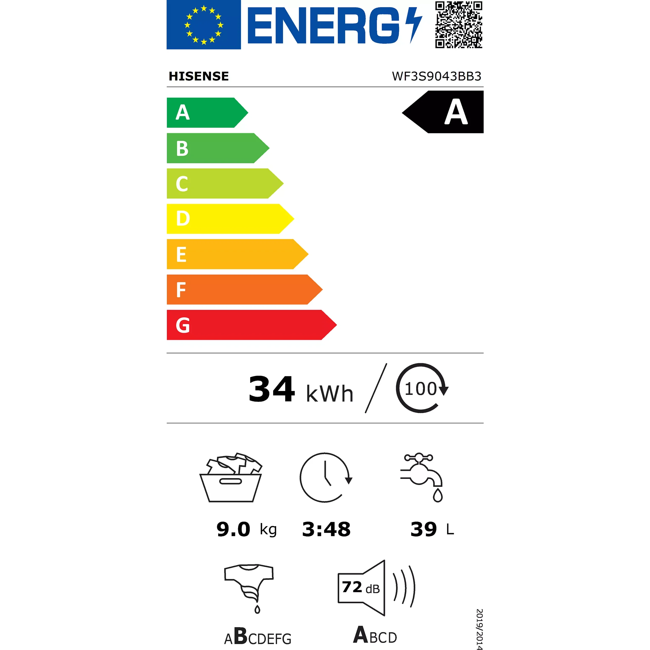 Lave linge hublot HISENSE WF3S9043BB3