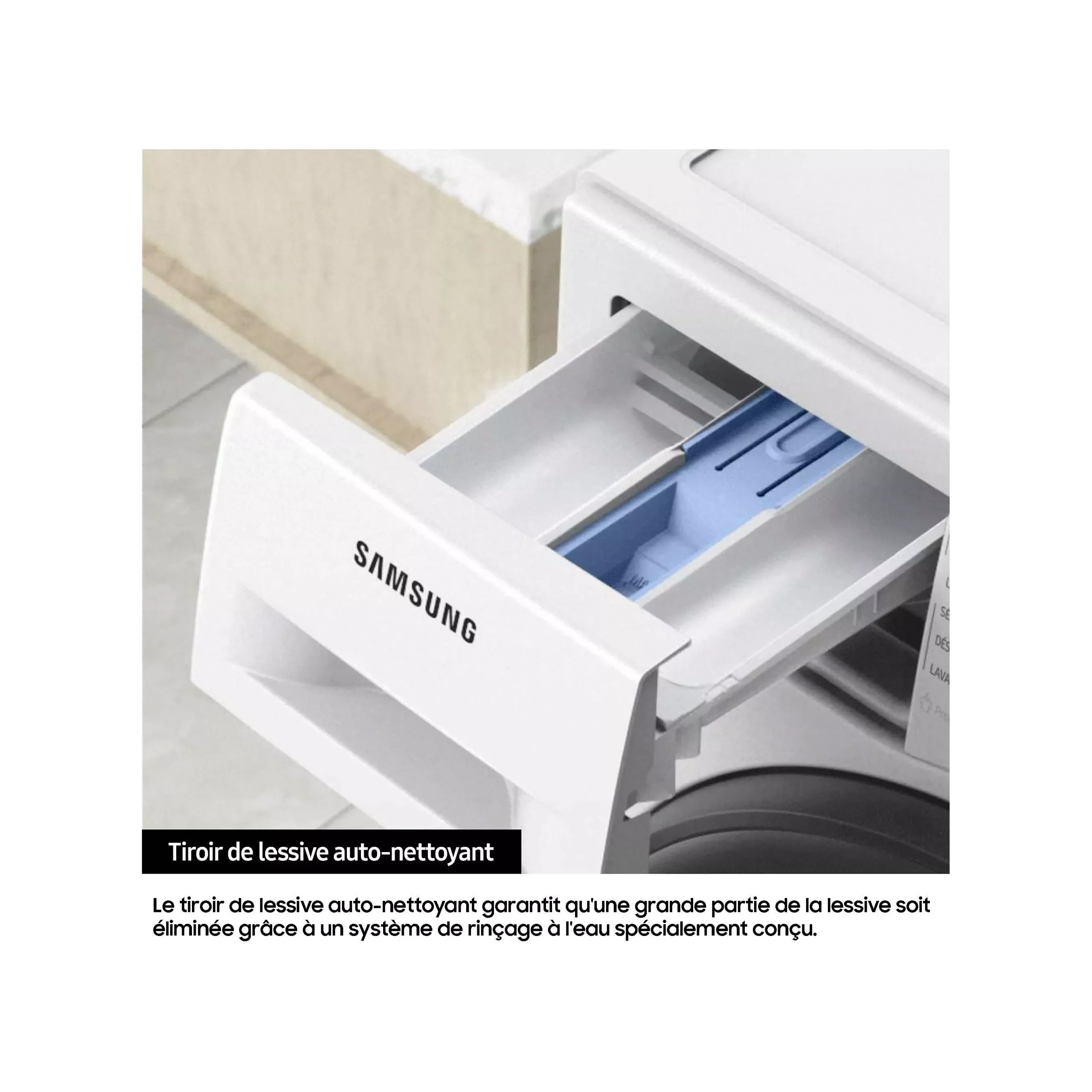 Ce modèle Samsung dispose de plusieurs programmes de lavage conçus pour s’adapter aux différents types de textiles.