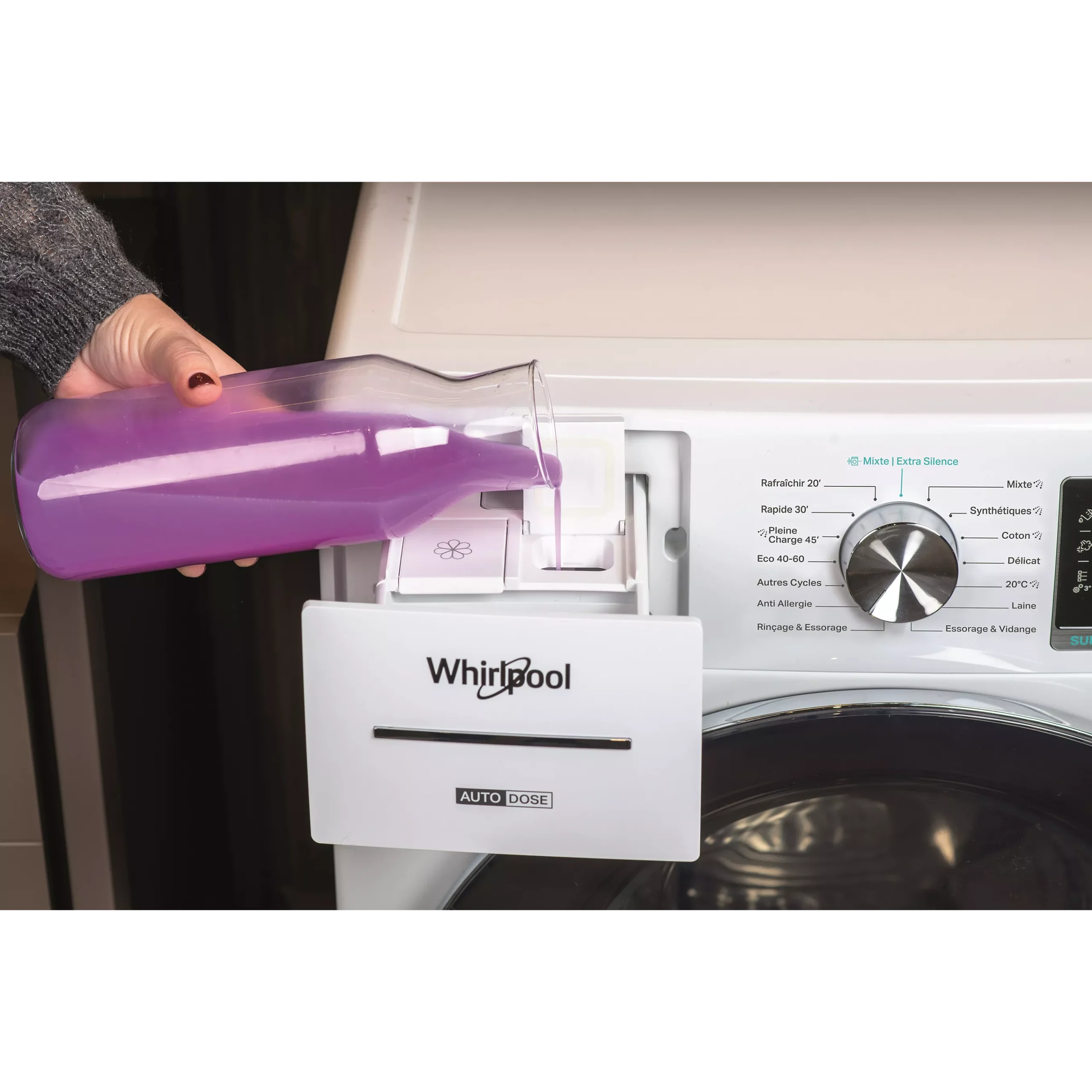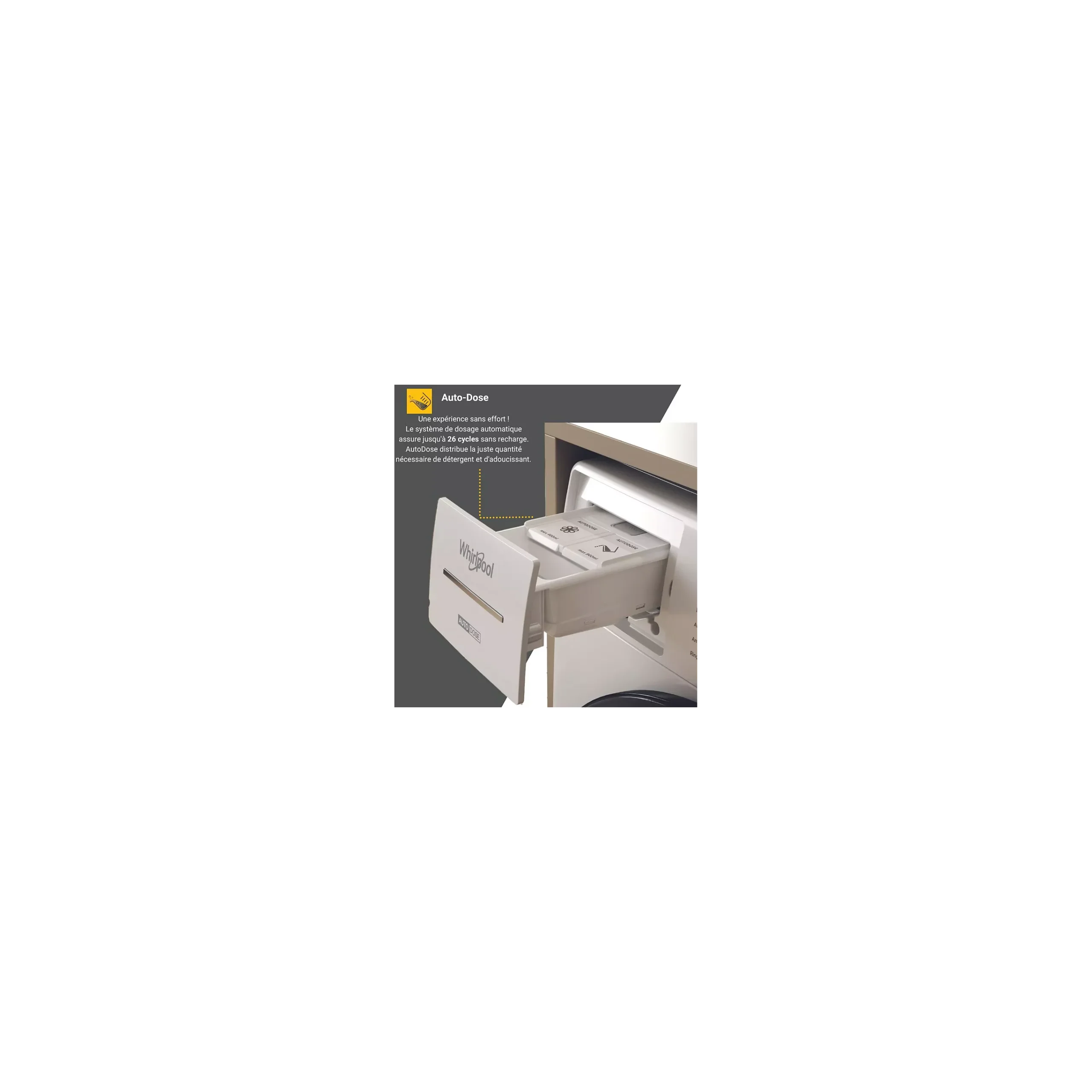 Tout d’abord, la fonction AutoDose ajuste automatiquement la quantité exacte de lessive et d’adoucissant selon la charge et le niveau de saleté. Ainsi, vous évitez le surdosage, tout en préservant la douceur et la longévité de votre linge.