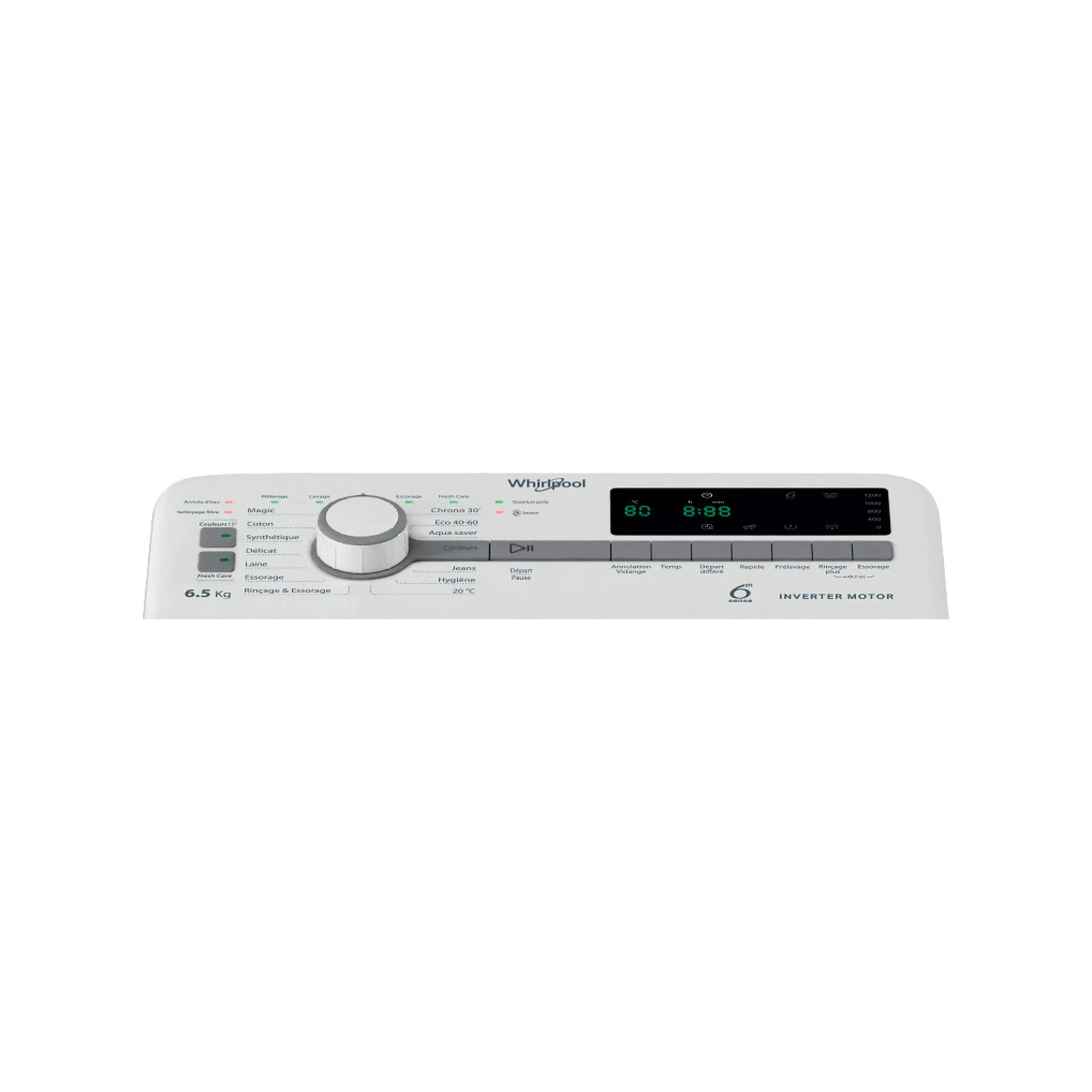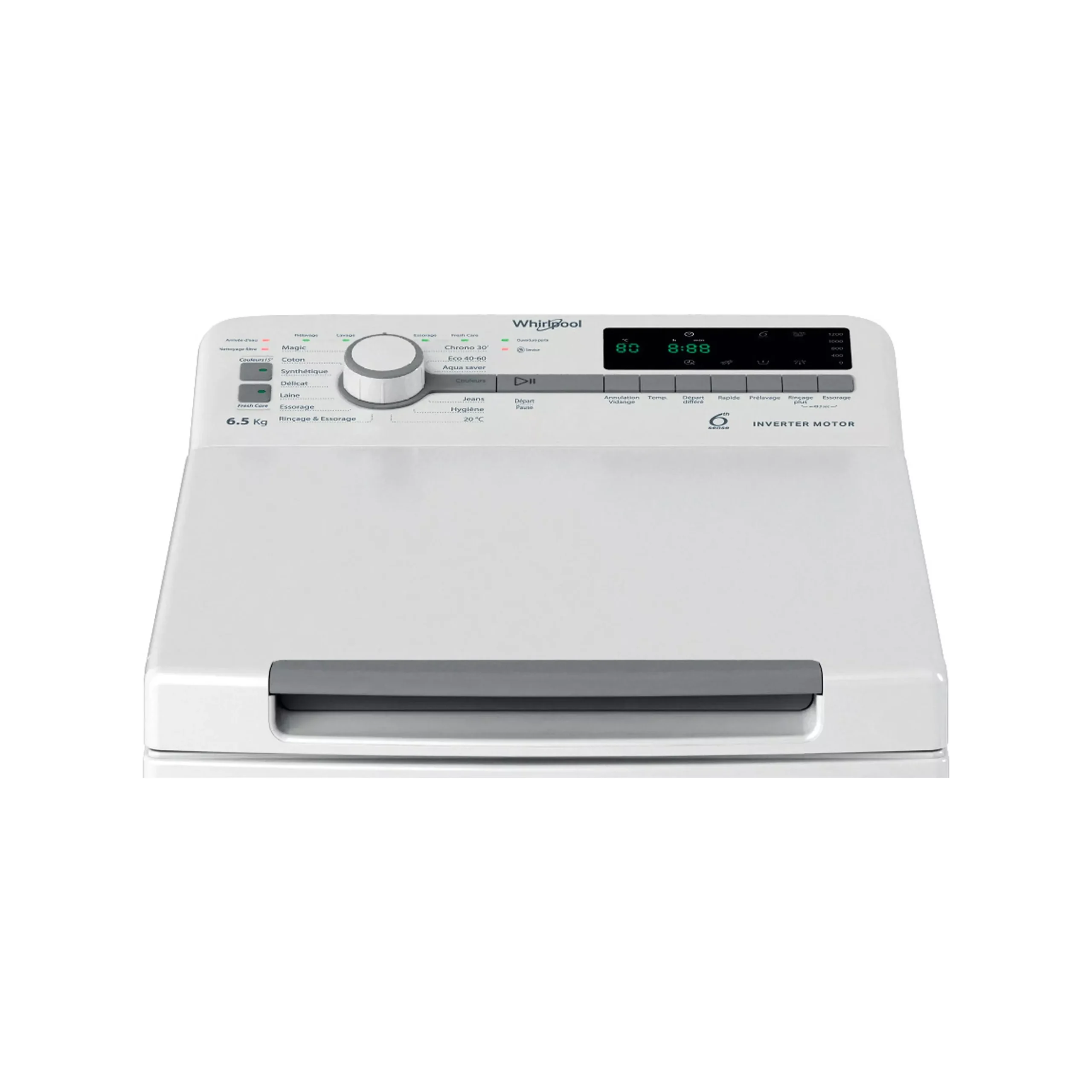Le WHIRLPOOL TDLR65261FR dispose d’un Smart Display E8, facilitant le choix des programmes et des options.