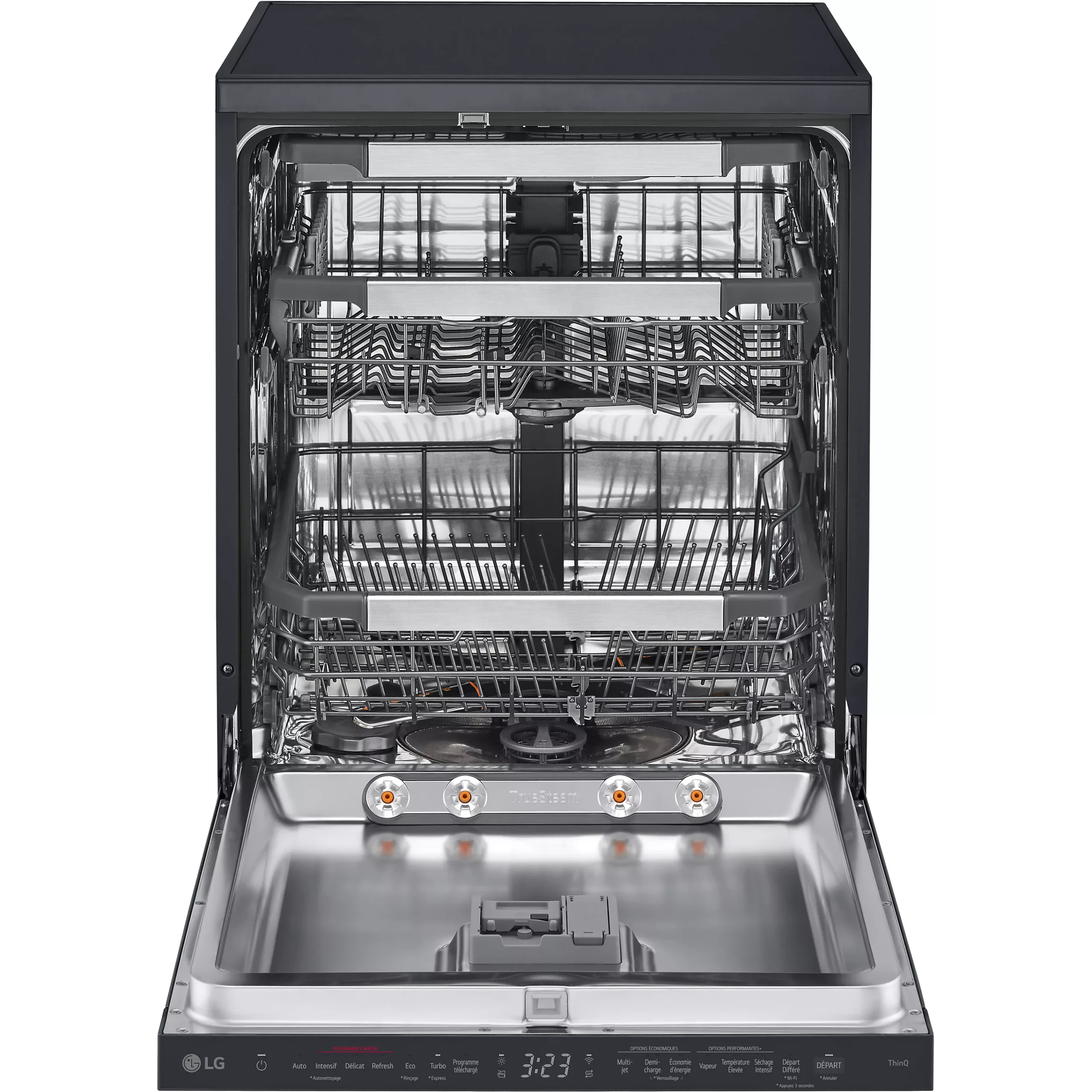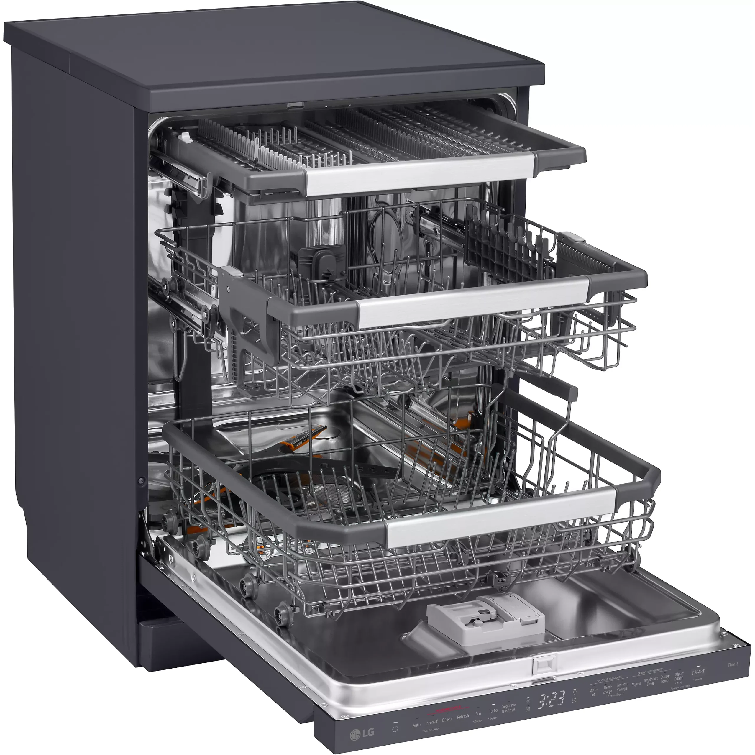 Grâce aux technologies de lavage LG, l’eau est diffusée de manière efficace dans toute la cuve. La vaisselle bénéficie d’un nettoyage homogène, même lors de charges importantes. Les résidus tenaces sont éliminés sans effort.