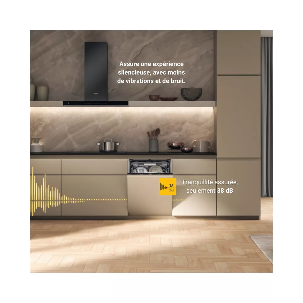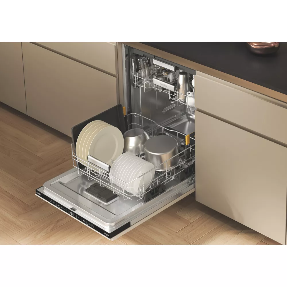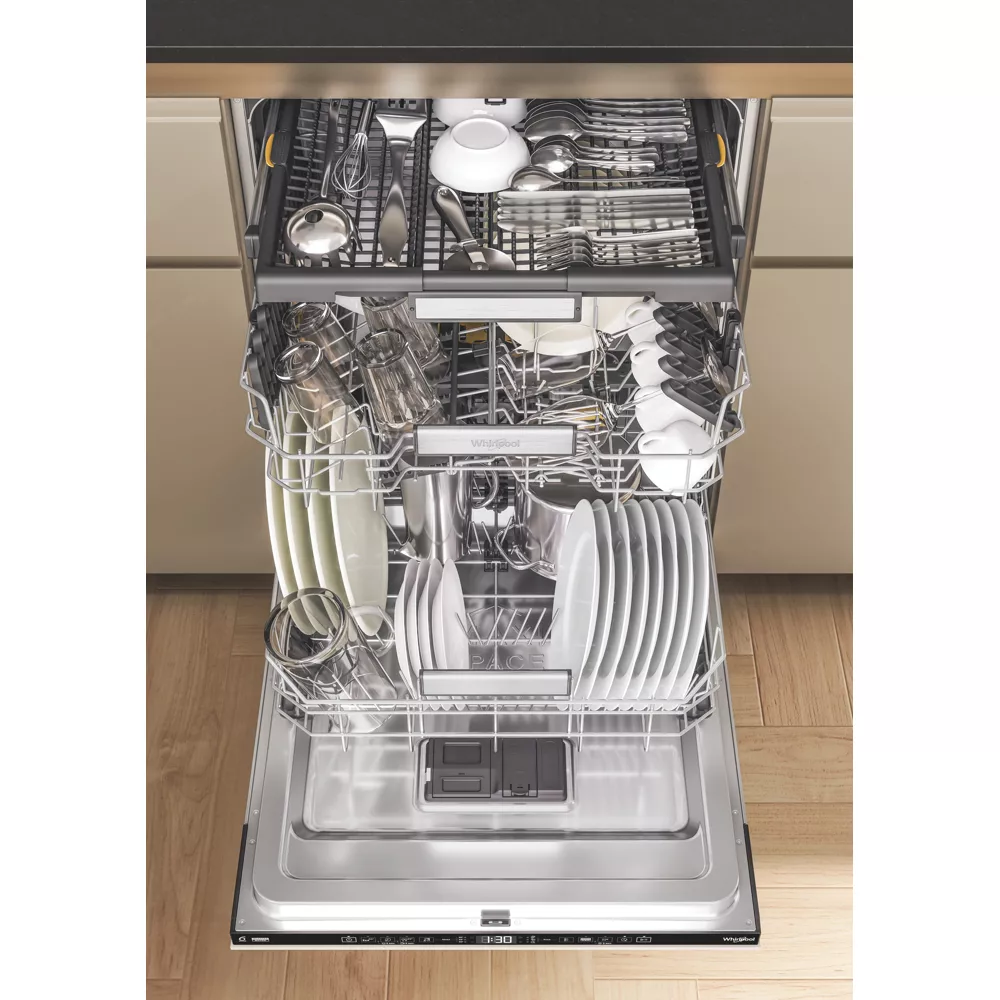 Le lave vaisselle encastrable Whirlpool W7IHT58T SupremeSilence MaxiSpace offre un espace intérieur généreux et un fonctionnement ultra silencieux, idéal pour les cuisines modernes.