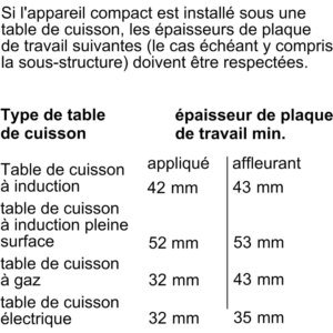 - Hauteur niche d’encastrement : Micro ondes hauteur 45 cm