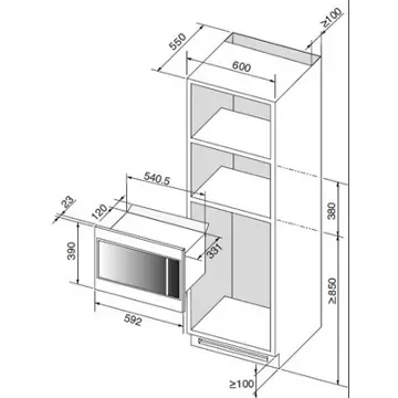 - Hauteur niche d’encastrement : Micro ondes hauteur 38 cm