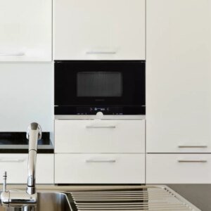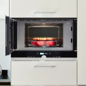 Avec sa cavité intérieure en inox, ce micro-ondes se nettoiera facilement. Sa cavité de 21 l vous permettra d’y déposer de grandes assiettes. L’intérieur de la porte plein verre vous garantit une porte toujours froide à l’extérieur pour éviter tout incident. Un superbe appareil qui pourra même remplacer un four basique avec ses différentes fonctionnalités.