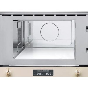 Le micro-ondes SMEG MP822PO, avec son volume net de 22 litres, est conçu pour s’intégrer harmonieusement dans les meubles hauts de votre cuisine grâce à son esthétique encastrable. Doté d’une alimentation électrique et de commandes électroniques intuitives, ce modèle arbore des manettes de commande de style colonial en couleur crème, offrant une touche d’élégance et de raffinement.