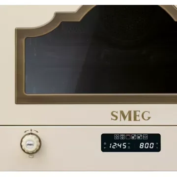 Le Micro-ondes grill encastrable SMEG MP722PO, conçu pour s’intégrer harmonieusement dans les meubles hauts de votre cuisine, allie esthétique et fonctionnalité. Avec son volume net de 22 litres, il offre l’espace nécessaire pour la préparation de vos plats favoris. La catégorie encastrable et l’alimentation électrique garantissent une installation simplifiée et une intégration esthétique. Les commandes électroniques, dotées de manettes Cortina de couleur crème, apportent une touche d’élégance et de modernité. La porte latérale à ouverture mécanique et le verrouillage enfant assurent sécurité et praticité, tandis que l’afficheur LED contribue à une utilisation intuitive.