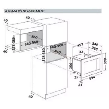 • Hauteur niche d’encastrement : Micro ondes hauteur 38 cm