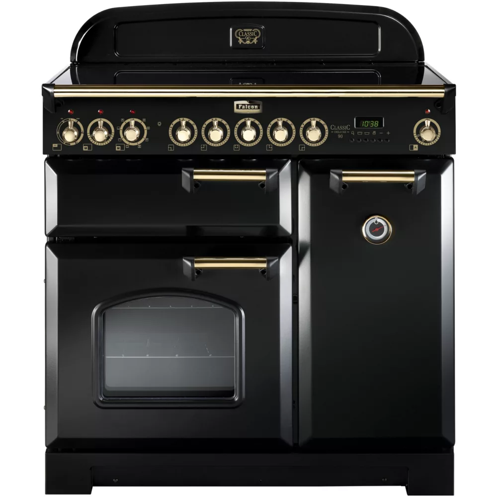 Le piano de cuisson induction FALCON DELUX90 INDUC Noir/Laiton combine une technologie de cuisson moderne, une grande précision et un design rétro élégant pour équiper les cuisines exigeantes.