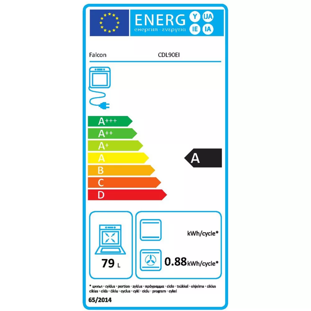 • Valeurs du label énergie : Label énergie A, Consommation en convection naturelle 0,79 kW, Consommation en chaleur tournante 0,88 kW