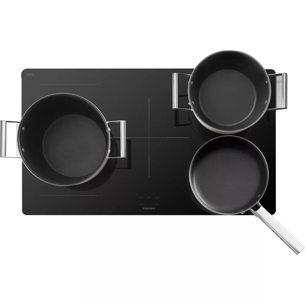 Les points clés Dimensions l x h x p : 90 x 90 x 60 cm 5 foyers, induction, avec zone modulable Four principal : 115 L, nettoyage catalyse 1 four, câble triphasé non fourni Le + : grand volume de 115 litres, sonde de cuisson pour des résultats parfaits et rails télescopiques.