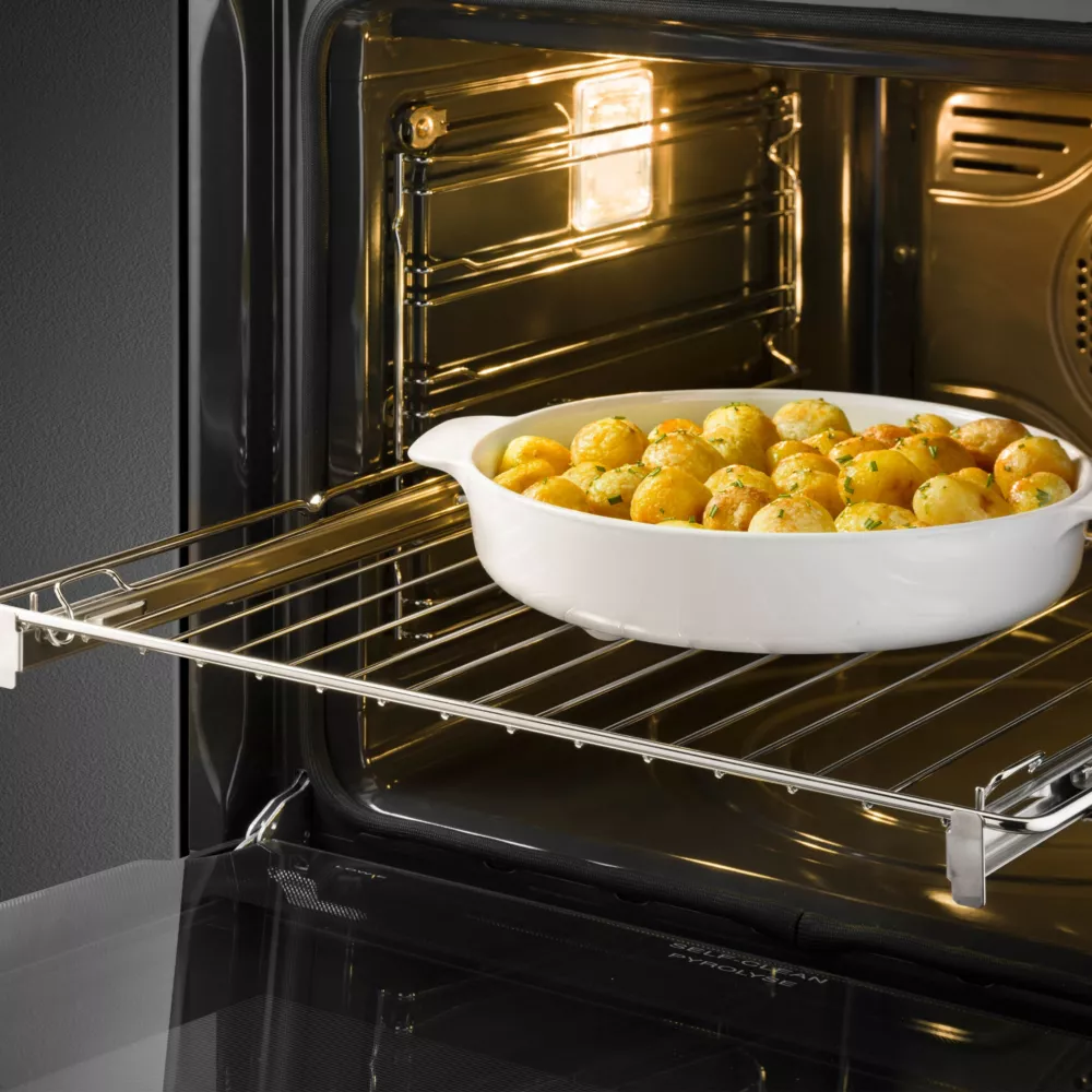 Le four électrique multifonction propose une capacité nette d’environ 115 litres. Il permet de cuisiner plusieurs plats en même temps. La chaleur tournante assure une diffusion homogène de la température. Les aliments cuisent de façon régulière, même sur plusieurs niveaux. Les différents modes de cuisson s’adaptent aux recettes du quotidien comme aux plats plus élaborés.