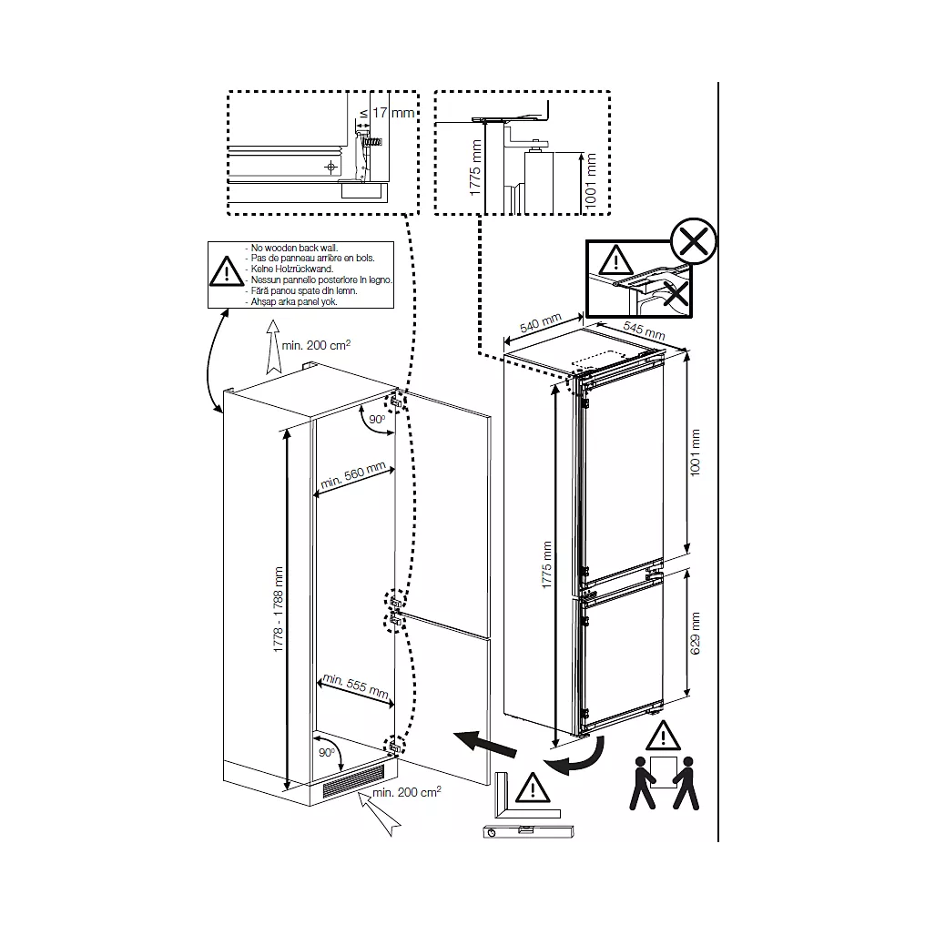 • Dimensions d’encastrement l x h x p : 54 x 177.5 x 54.5 cm