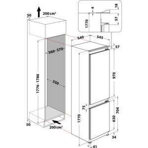 - Dimensions d’encastrement l x h x p : 56 x 177.6 x 56 cm