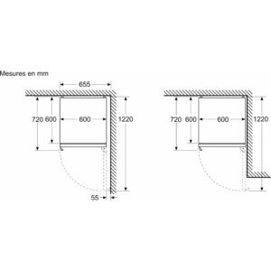 - Installation : porte sans débord, le réfrigérateur peut être installé contre le mur