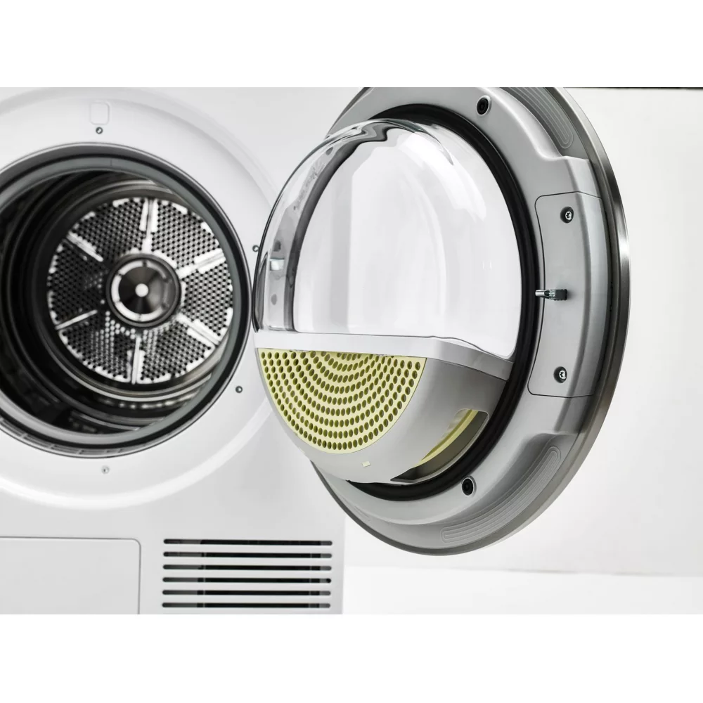 Doté d’un moteur à induction durable et d’un tambour en inox résistant à la corrosion, ce sèche-linge est conçu pour durer. Le filtre amovible facilite l’entretien et l’accès au réservoir d’eau est simple, ce qui rends les cycles d’entretien rapides et faciles.