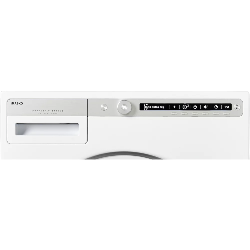 Le sèche-linge pompe à chaleur ASKO T411HD.W combine performance fiable, grande capacité et consommation maîtrisée pour un séchage efficace et délicat du linge.