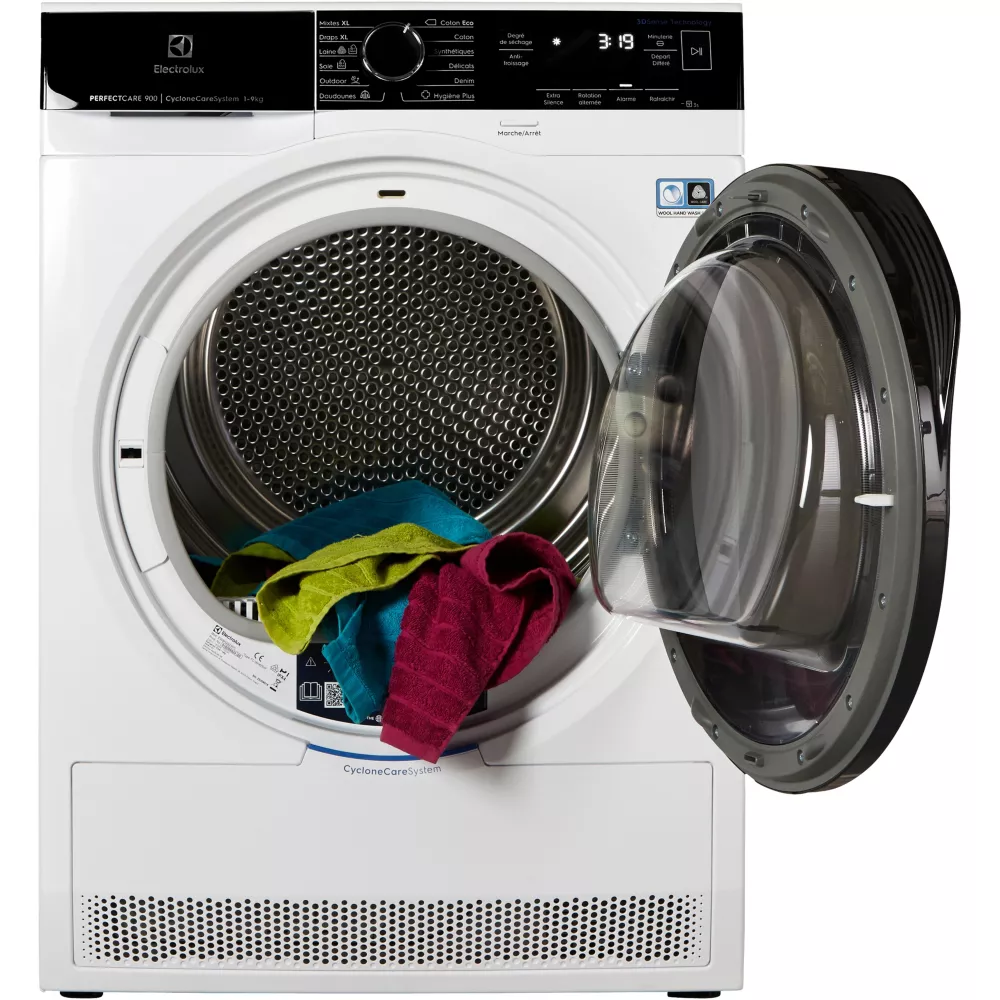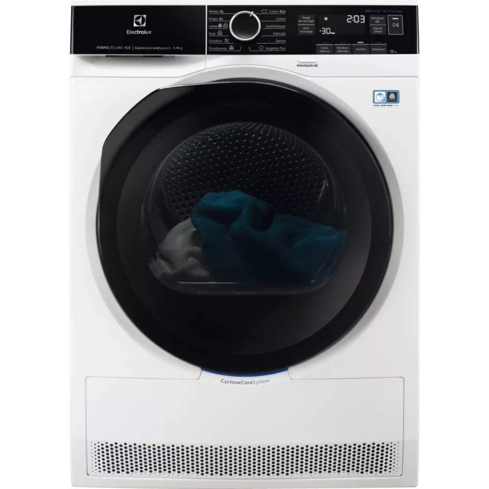 Ce sèche-linge pompe à chaleur ELECTROLUX EW9H2923PC est aussi bardé de technologies pour vous faire profiter de séchages performants. La fonction 3DSense scanne les tissus en profondeur et ajuste automatiquement les réglages pour des résultats homogènes. Ainsi, vos doudounes garderont leur chaleur thermique jusqu’à 30 %mieux qu’avec le séchage à l’air.