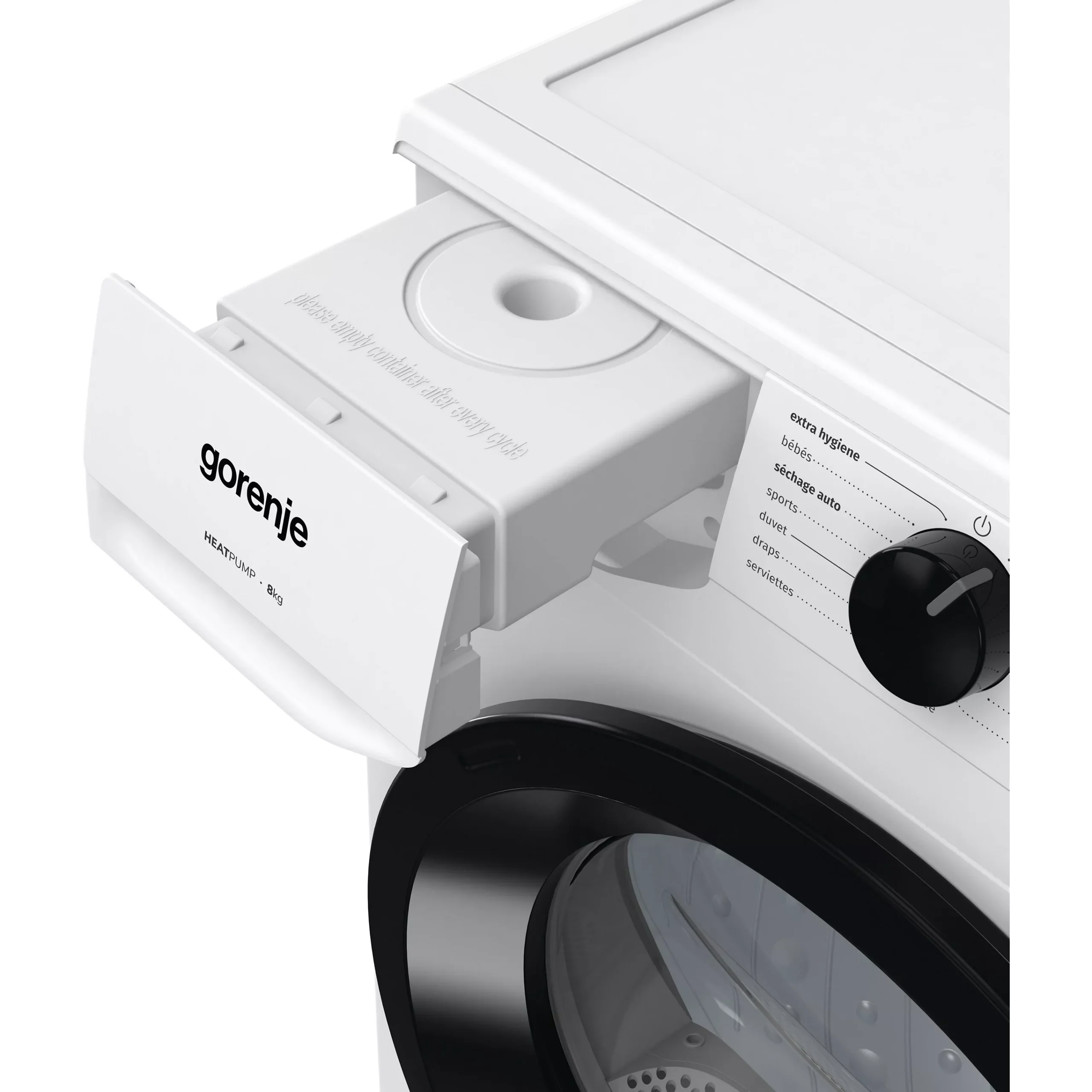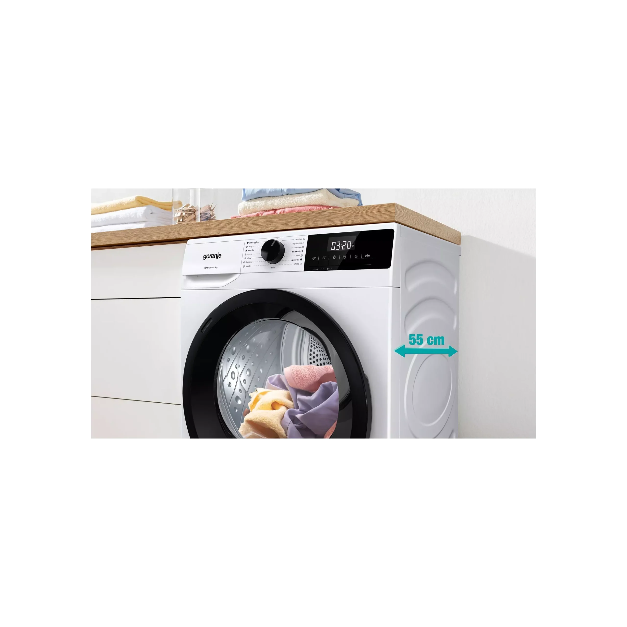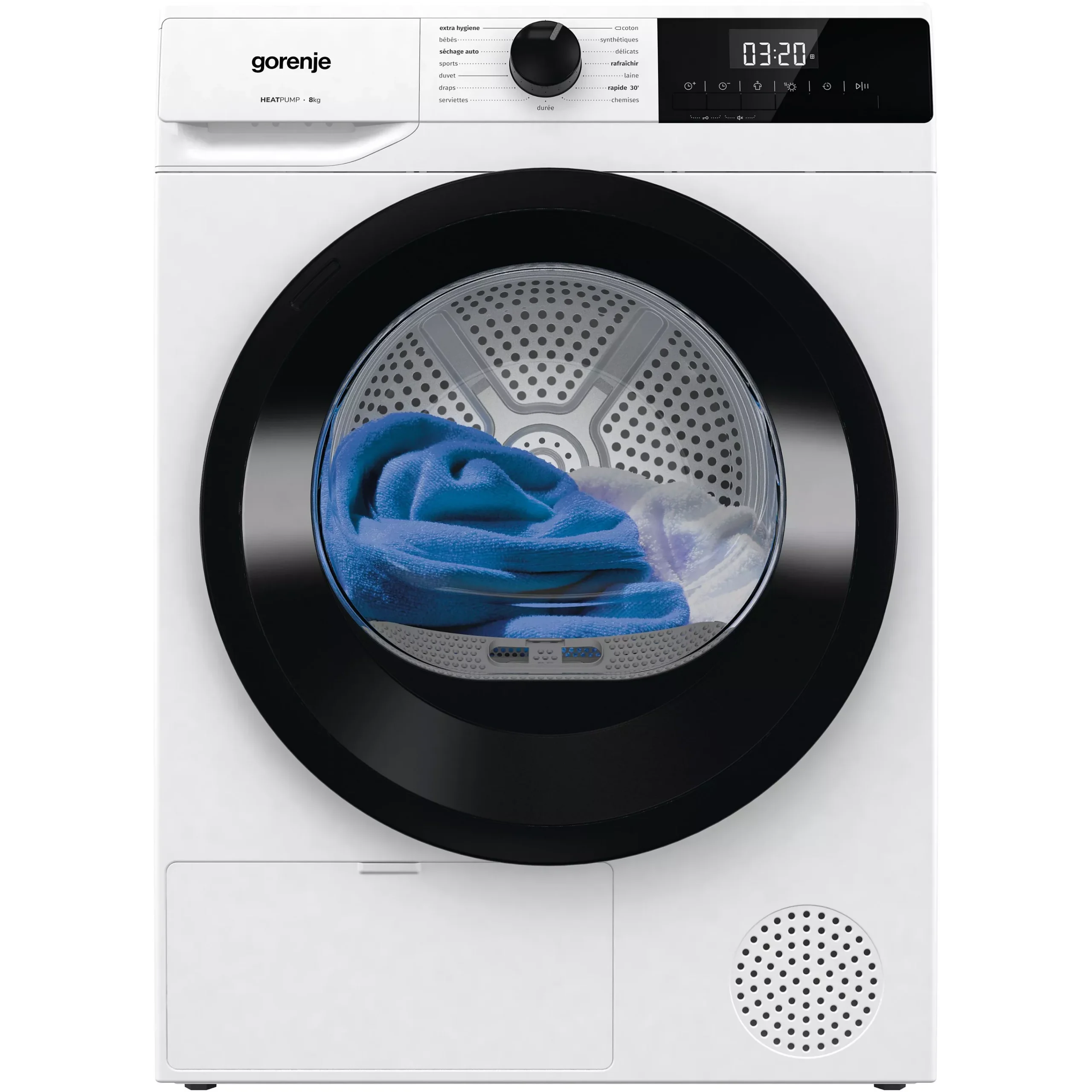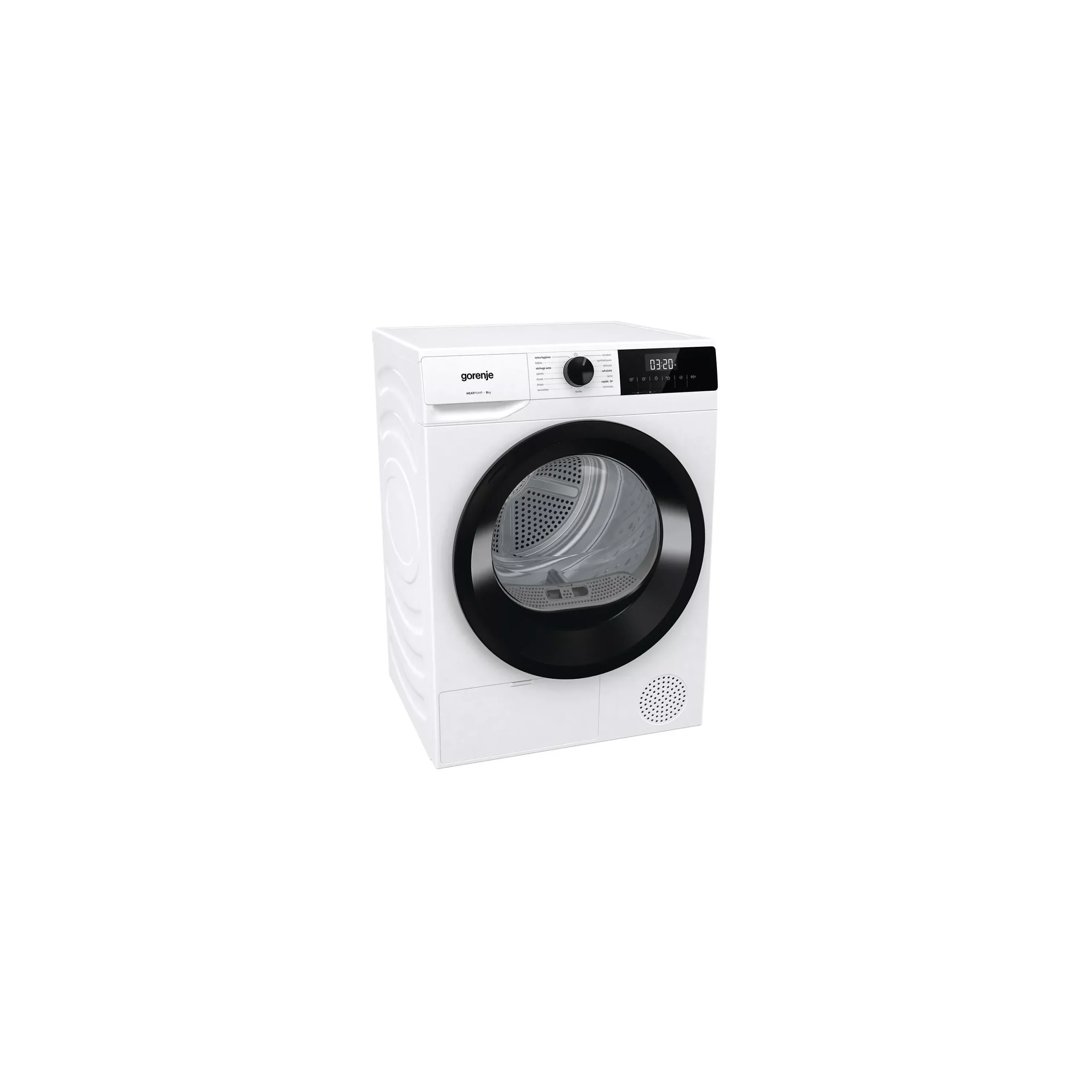 Le Gorenje DHNE82 propose différents cycles de séchage pour le coton, les synthétiques et les textiles délicats, garantissant un résultat optimal pour chaque type de linge.