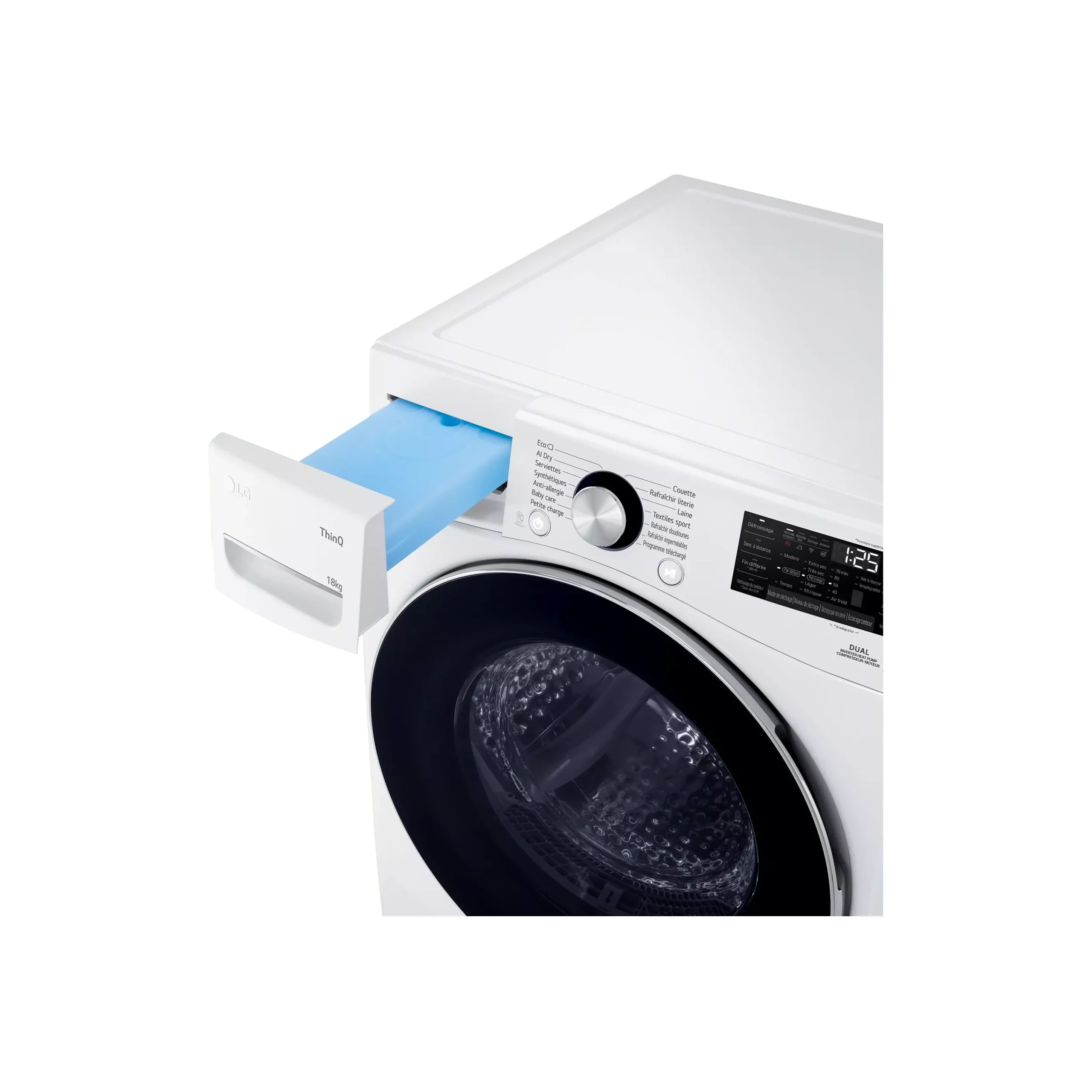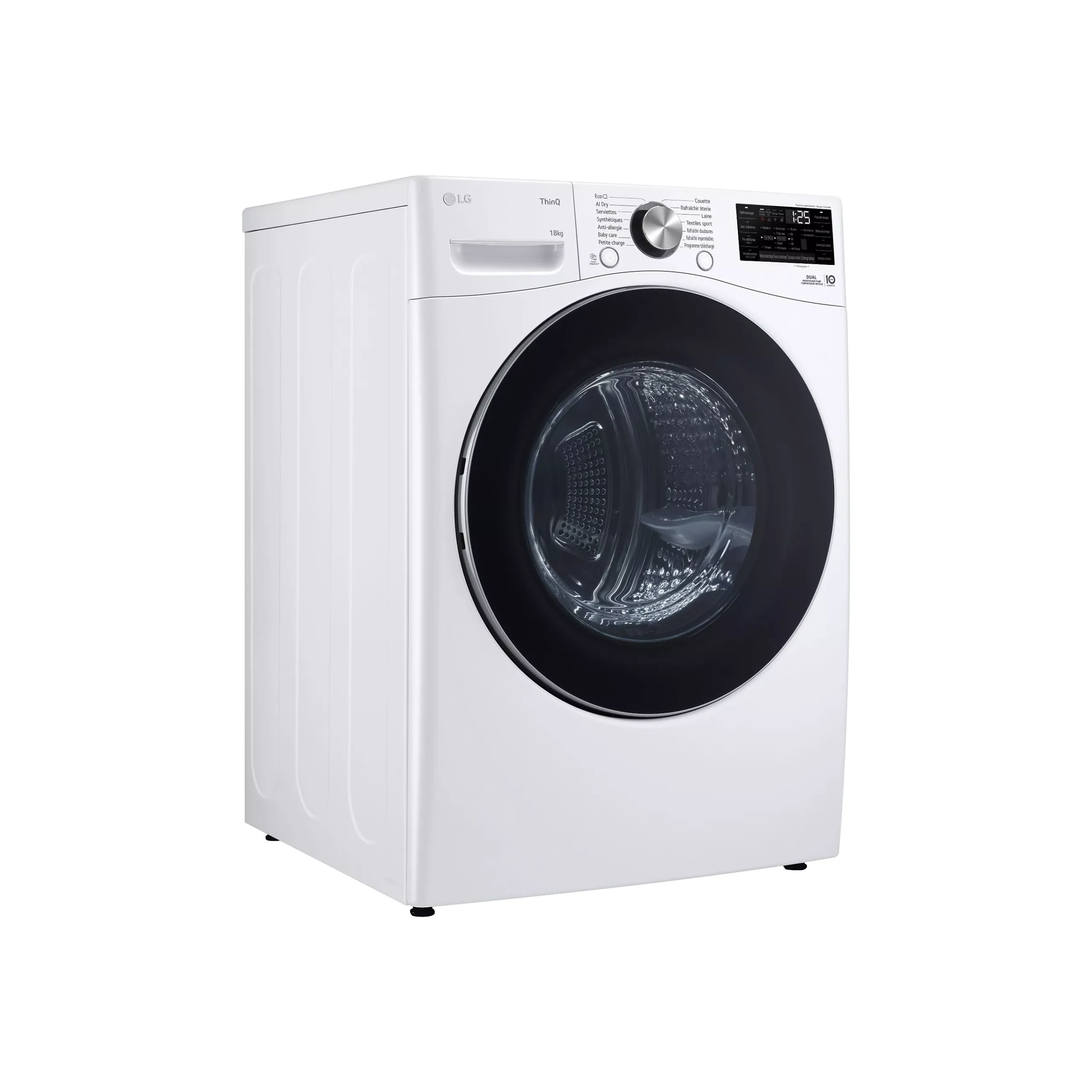 Grâce à la pompe à chaleur, le sèche-linge LG 12 kg RH8P12WH consomme moins d’énergie qu’un sèche-linge classique. Ainsi, il combine performance, confort et respect de l’environnement.