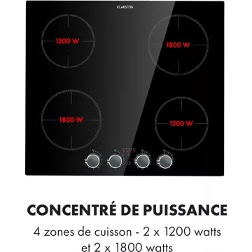 Table de cuisson puissante avec 4 plaques à induction avec bouton rotatif à encastrer